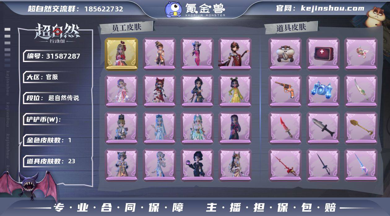 红色皮肤数量:0 金色皮肤数量:1 紫色皮肤数量:17 道具皮肤数量:23 血色中的玛丽 卖家说:可小刀