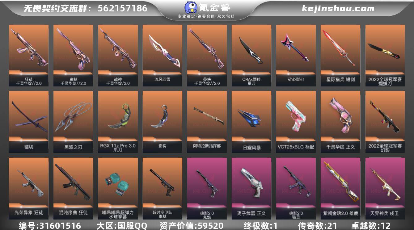 班若假面2.0一套!24年冠军套!西部未来正义!威龙之刃!G10087.国服QQ.98皮2终极25传奇11卓越121卡85挂饰113喷漆营地ID:007208457 【拥有套装】般若假面2.0套装(般若假面//2.0-狂徒,般若假面//2.0-獠犬,般若假面//2.0-战神,般若假面//2.0-狂怒,鬼丸国纲)2024全球冠军赛套装(2024全球冠军赛-幻影,2024全球冠军赛-战刀) 【拥有近战武器】诡秘蛇影-军刀,神圣领域-战刀,荒土机兵-热能刀,超限闪存-匕首,超能偶像-应援棒,魄月玄刃,落英飞旋,夜刃诡镰,RGX-11z-Pro//3.0-爪刀,威龙之刃, 【拥有步枪】混沌序曲-狂徒,千灵华绽-幻影,洪荒怒焰-狂徒,塑水宗-狂徒,偃月苍龙-狂徒,781-A协议-獠犬,紫阙金琅-戍卫,紫阙金琅-狂徒,盖亚的复仇-狂徒,掠影-狂徒,诡秘蛇影-狂徒,神圣领域-獠犬,神圣领域-幻影,荒土机兵-狂徒,超限闪存-幻影,超能偶像-戍卫,超能偶像-狂徒,末日之翼-幻影,折光棱晶-戍卫,月球哨兵-戍卫,纳米打击-幻影,逆冲蛮牛-戍卫,逆冲蛮牛-獠犬,模拟赫兹-獠犬,浮光跃金-戍卫,聚合之力-幻影,采蜜小蜂队-獠犬, 【拥有狙击枪】西部未来-飞将,千灵华绽-冥驹,诡秘蛇影-莽侠,荒土机兵-冥驹,超限闪存-莽侠,末日之翼-飞将,星云暗涌-冥驹,月球哨兵-莽侠,模拟赫兹-冥驹,聚合之力-飞将,