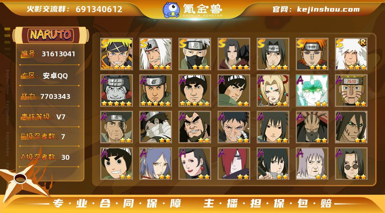 V7 7S忍 29A忍 116忍 1109S碎片 16通灵 700W战力 前500名 中忍着急出价格可商量
