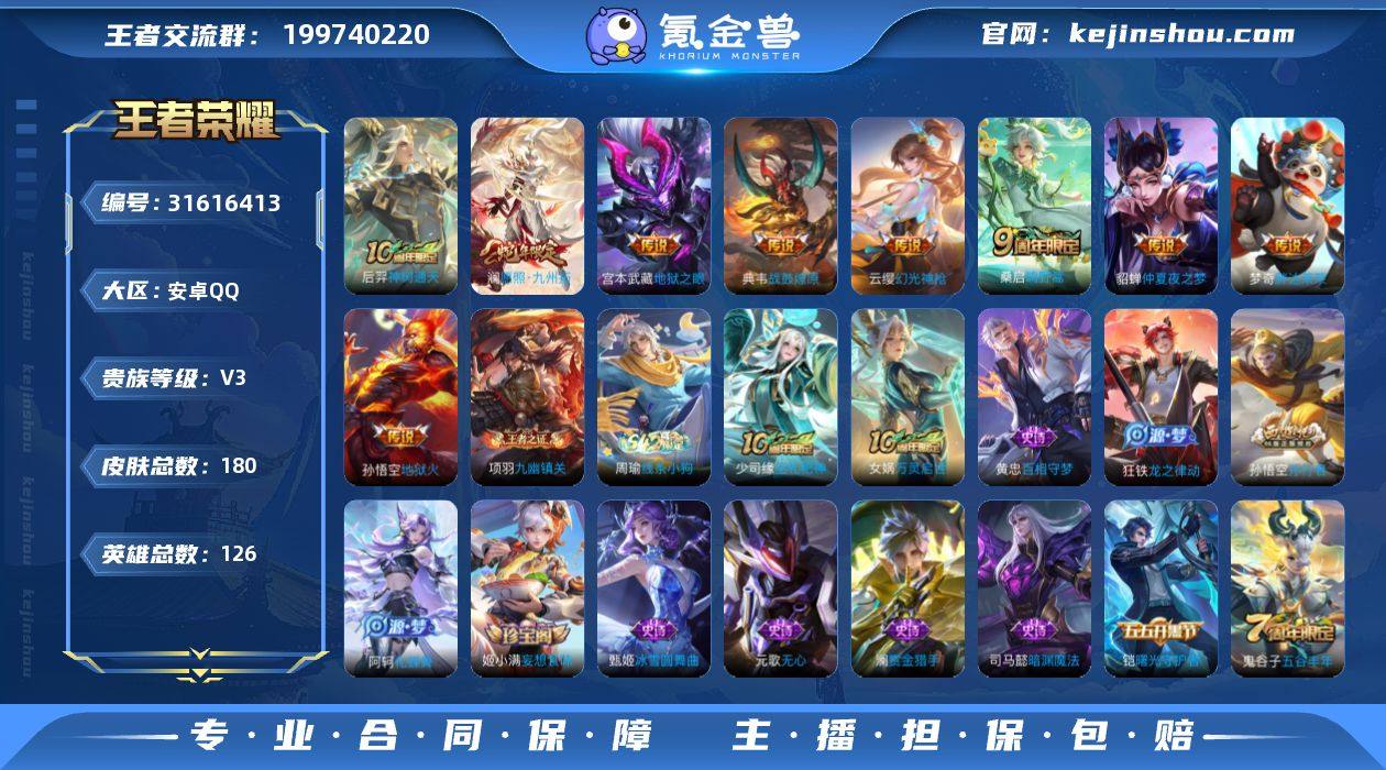 【240皮肤1典藏3传说1星元 秒换绑不用等】安卓Q-128英雄【1水晶】全息碎影【1星元】星际治安官【3传说】鸣野蒿 超时空战士 久胜战神【64史诗】九幽镇关 万灵启世 龙之律动 星界战将 怒海争锋 江河有灵 天穹祈灯 天穹之誓 逐霄战戟 石田雨龙 灵蛊蚀心 逆浪荇歌 百相守梦 电玩·爆裂旋风 完美运算 百解令 舞动绿茵 幽灵船长 拒霜思 女仆咖啡 魅力维加斯 魔术师 鹰眼统帅 圣诞恋歌 箭羽风息 鬼剑武藏 水晶猎龙者 曙光守护者 暗隐猎兽者 航海奇遇记 千年之狐 逐浪之夏 地狱岩魂 德古拉伯爵 天才门将 紫霞仙子 末日机甲 暗影游猎 胡桃异想国 金属风暴 化蝶舞 梁祝 李小龙 猫狗日记 水果甜心 蔷薇恋人 孙行者 偶像歌手 乘风破浪 冰冠公主 摇滚巨星 纤云弄巧 乱世虎臣 皇家上将 冰雪圆舞曲 高山流水 无心 五谷丰年 时之奇旅 未来纪元 节奏热浪 心灵骇客 星夜王子 特工魅影【128勇者】劲辣红锅 古海寻踪 妄想特派 幻夜行动 西部游侠 剑破天穹 探海日志 云中旅人 命运角斗场 零食大作战 热血海滩 经纬探寻者 龙舞盛年 危途狂花 金庭之子 破局者 群星魔术团 聚星闪耀 海盐诗旅 决胜大满贯 漠中幻影 功夫炙烤 线条小狗 玫蓝誓约 溯影追猎 极光幻客 鹤鸣心笺 径山谋武 虚灵犬护 荣光之誓 罗小黑战记 春野闲踪 死霸装 小满鸭 噬灭天穹 魅影绮裳 雪境奇遇 星梦巡礼 命运加冕 雾都夜雨 踏浪烽翎 归虚梦演 暗都幽影 逆浪荇歌 敬我三分 铁骨偃魂 云械蓝图 熔金海岸 谧流熔炉 逐霄战戟 完美运算 天穹祈灯 苍林狼骑 天穹之誓 玩趣恶龙 未来纪元 万象初新 霸王丸 龙腾万里 幻乐之宴 原初探秘者 街头霸王 教廷特使 阿尔法小队 兔女郎 炽热元素使 特工战影 功夫老勺 醍醐杖 敏锐之力 万事如意 纽约教父 汉昭烈帝 秘密基地 哥特玫瑰 瓷语鉴心 乓乓大师 野性能量 红桃皇后 虹云星官 神迹守卫 次元突破 鲨炮海盗猫 坚韧之力 千军破阵 天使之...