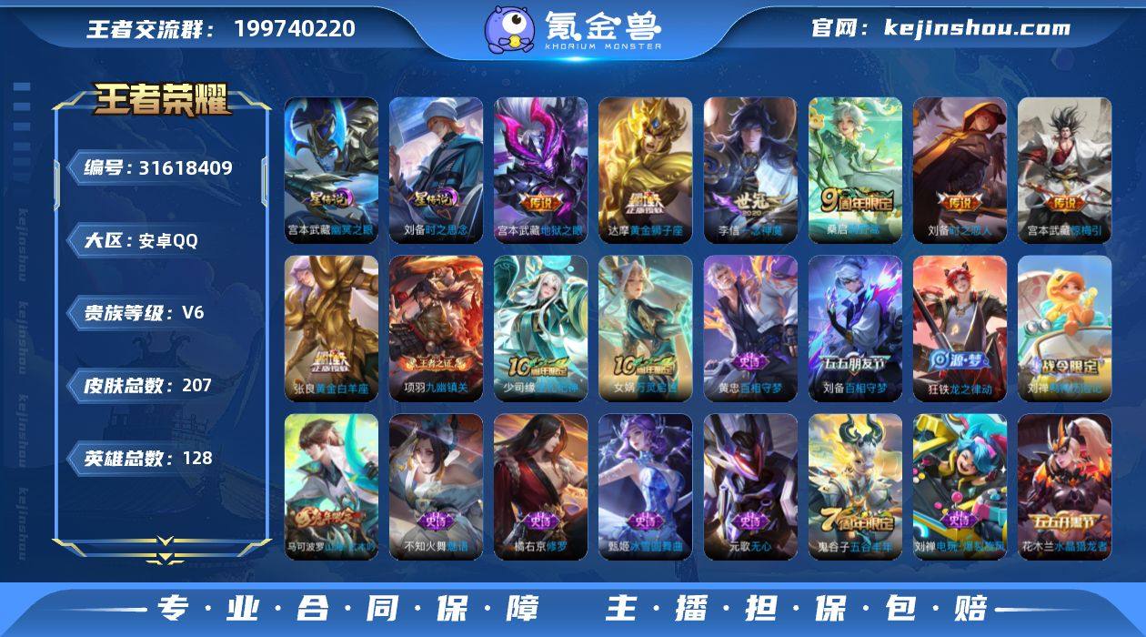 可二次【207皮肤8传说2星元一念神魔 秒换绑不用等】安卓Q-128英雄【2星元】幽冥之眼 时之思念【8传说】神树通天 鸣野蒿 惊梅引 黄金狮子座 地狱之眼 一念神魔 时之恋人 黄金白羊座【55史诗】鸭鸭历险记 九幽镇关 巫礼祀神 万灵启世 龙之律动 星界战将 怒海争锋 江河有灵 天穹祈灯 天穹之誓 逆浪荇歌 百相守梦 群星魔术团 顽趣 电玩·爆裂旋风 山海·玄木吟 青焰无极 完美运算 百解令 魅语 功夫厨神 魅力维加斯 魔术师 鹰眼统帅 圣诞恋歌 鬼剑武藏 水晶猎龙者 修罗 航海奇遇记 地狱岩魂 绅士熊喵 天才门将 圣诞狂欢 末日机甲 荣光圣徽 金属风暴 梁祝 水果甜心 偶像歌手 乘风破浪 缤纷独角兽 黎明之约 心灵战警 天秀·启明 摇滚巨星 纤云弄巧 皇家上将 冰雪圆舞曲 黄金分割率 无心 五谷丰年 节奏热浪 特工魅影 原初追逐者【119勇者】劲辣红锅 苍威无极 古海寻踪 妄想特派 西部游侠 剑破天穹 探海日志 春野之旅 云中旅人 龙舞盛年 金庭之子 破局者 群星魔术团 聚星闪耀 海盐诗旅 功夫炙烤 浪漫序章 线条小狗 玫蓝誓约 苍云破阵 景韶洛都 溯影追猎 极光幻客 鹤鸣心笺 虚灵犬护 荣光之誓 布丁狗之约 鸭鸭历险记 灵野札记 春野闲踪 死霸装 锦麟游梦 小满鸭 噬灭天穹 雪境奇遇 星梦巡礼 爆裂喵拳 命运加冕 雾都夜雨 克喵 踏浪烽翎 归虚梦演 暗都幽影 逆浪荇歌 敬我三分 异域游侠 铁骨偃魂 云械蓝图 熔金海岸 谧流熔炉 破阵·退雄兵 完美运算 天穹祈灯 苍林狼骑 天穹之誓 玩趣恶龙 未来纪元 万象初新 霸王丸 龙腾万里 幻乐之宴 街头霸王 教廷特使 阿尔法小队 兔女郎 炽热元素使 特工战影 功夫老勺 敏锐之力 万事如意 纽约教父 汉昭烈帝 秘密基地 哥特玫瑰 乓乓大师 野性能量 虹云星官 进击墨子号 神迹守卫 次元突破 西部大镖客 鲨炮海盗猫 坚韧之力 幻想奇妙夜 东方不败 海滩派对 死亡骑士 五福同心 忍·炎影 白执事 花好人间...