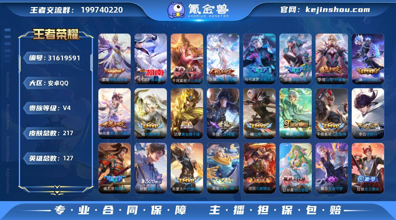 贵族等级:V4 典藏皮肤数:1 珍品无双皮肤数:0 无双皮肤数:0 珍品传说皮肤数:1 传说皮肤数:17 史诗皮肤数:64 皮肤数:217 英雄数:127 段位:星耀 卖家说:火影忍者,和平精英都有号