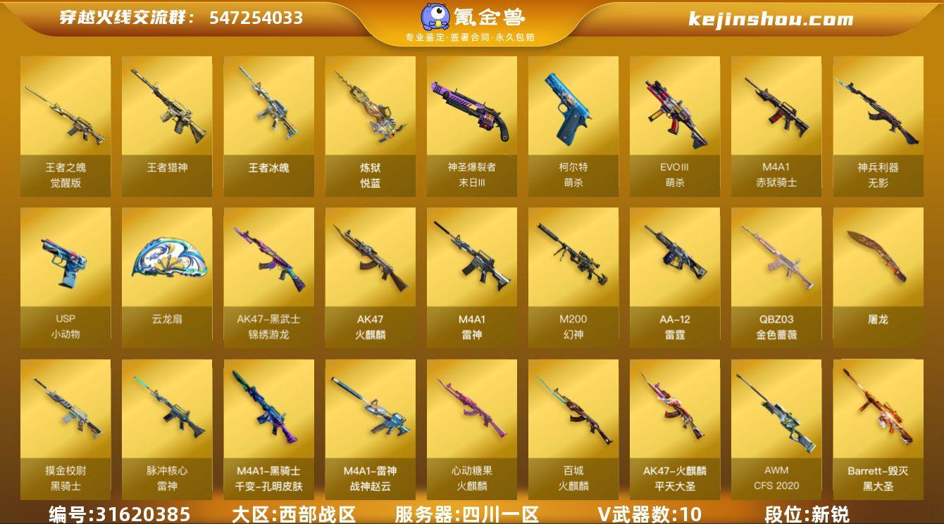 金色蔷薇-空 星神-炽天使 cop-雷霆王者 幻神 王者炫 魅影 各种王者武器 各种活动稀有武器 一直是自己在玩 信用很好 现在因为没时间玩了出了
