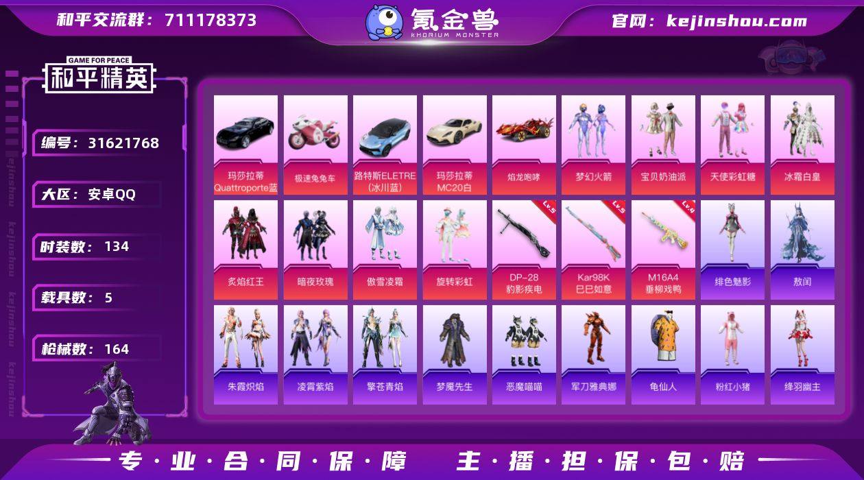 安卓手Q H-NWD167【8粉装5特效枪5载具1粉色飞行器 军刀雅典娜/火箭/龟仙人/粉红小猪/奶油派/彩虹糖/冰霜白皇/炙焰红王/暗夜玫瑰/傲雪凌霜/旋转彩虹/绛羽幽主/敖闰/绯色魅影/英勇保护者/冰川特警/恶魔喵喵/香榭午后】52006热力值-6王牌印记-134套装-164枪皮 【热门品类】:角色-军刀雅典娜,粉装-梦幻火箭,套装-龟仙人,套装-粉红小猪 【粉色套装】:粉装-宝贝奶油派,粉装-天使彩虹糖,粉装-梦幻火箭,粉装-冰霜白皇,粉装-炙焰红王,粉装-暗夜玫瑰,粉装-傲雪凌霜,粉装-旋转彩虹