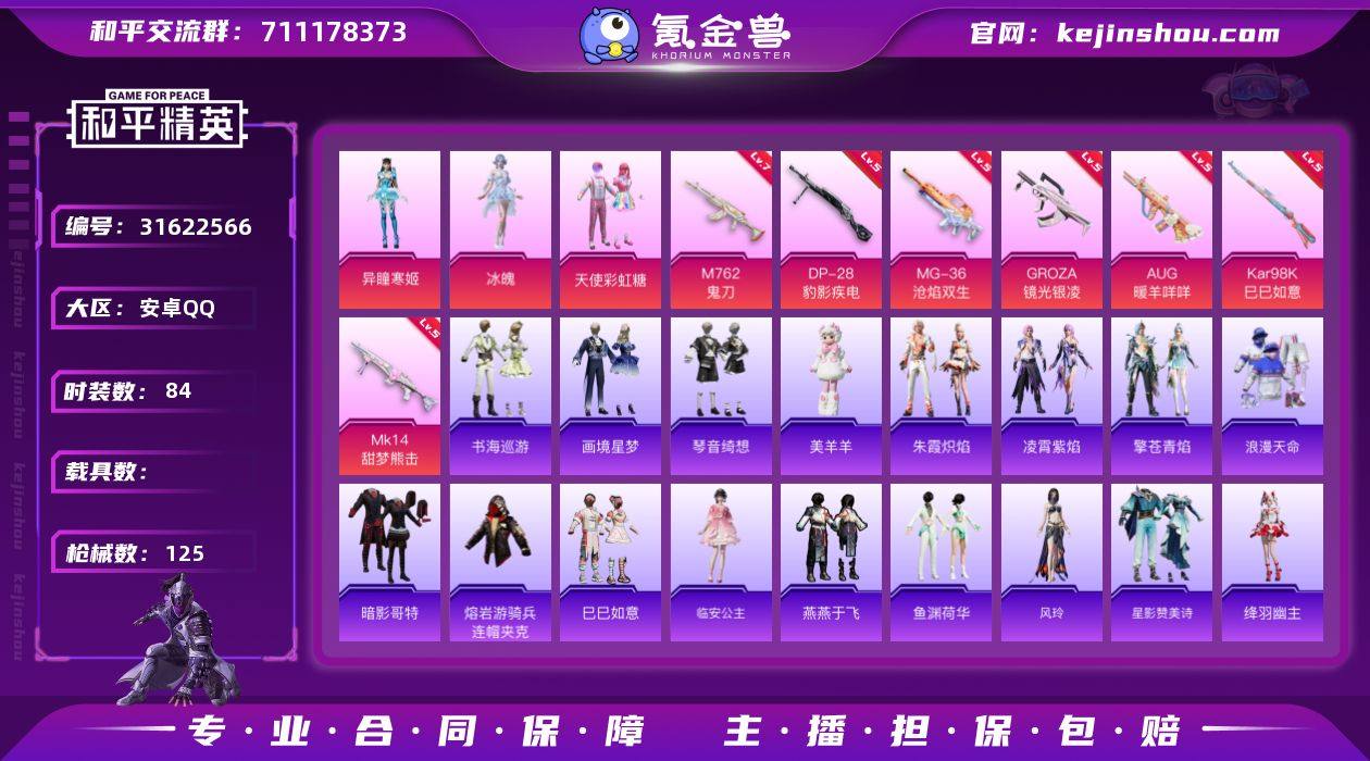 安卓 手Q-3粉装-9特效枪-0载具-3粉色飞行器-34588热力值-5王牌印记-84套装-125枪皮 【热门品类】:套装-浪漫天命,套装-暗影哥特,熔岩游骑兵连帽夹克 【粉色套装】:粉装-天使彩虹糖,角色-冰魄,角色-异瞳寒姬 【粉色枪皮等级】:GROZA-镜光银凌(五级),AUG-暖羊咩咩(五级),M762-鬼刀(七级),AKS-74U-森灵之息(五级),Kar98K-巳巳如意(五级),Mk14-甜梦熊击(五级),DP-28-豹影疾电(五级),MG-36-沧焰双生(五级) 【粉色枪皮】:GROZA-镜光银凌,AUG-暖羊咩咩,M762-鬼刀,AKS-74U-森灵之息,Kar98K-巳巳如意,Mk14-甜梦熊击,Mk14-福马献瑞,DP-28-豹影疾电,MG-36-沧焰双生 【粉色飞行器】:炫彩糖果飞行器,脆鲨七海飞行器,极意拳锋飞行器 【粉色降落伞】:甜心宝贝降落伞,星梦奇缘降落伞,盛世惊鸿降落伞,极意拳锋降落伞,炫彩糖果降落伞 【稀有套装】:套装-巳巳如意,套装-雪国风尚,套装-炫彩糖果,角色-临安公主,套装-燕燕于飞,套装-鱼渊荷华,角色-风玲,套装-星影赞美诗,角色-绛羽幽主,套装-朱霞炽焰,套装-凌霄紫焰,套装-擎苍青焰,玩偶服-美羊羊,套装-书海巡游,套装-画境星梦,套装-琴音绮想,套装-雨过天青,套装-红釉青花 【稀有枪皮】:AUG-冰晶雪宝,AKM-破晓战魂,SCAR-L-夜灯,SCAR-L-炫彩节奏,M416-红色方程式,GROZA-影袭,AUG-耀粉歌者,M762-天降萌叽,G36C-星穹咏叹调,蜜獾-天降萌叽,ACE32-画境星梦,ARX-凌霄紫焰,UZI-影袭,UZI-月影灵韵,UMP45-夜灯,Vector-生命誓言,汤姆逊-幻影战神,MP5K-画境星梦,JS9-凌霄紫焰,P90-巳巳如意,M24-影袭,AWM-雷霆特警,M1加兰德-画境星梦,S686-巳巳如意,S686-千金淑猫,S12K-玩趣呆呆,S12K-夜灯,AA12-G-画境星梦,M249-星之彼岸,DP-28-甜心宝贝,MG3-幻世战舞者,MG-36-凌霄紫焰,P92-凌霄紫焰,爆炸猎弓-喜羊羊与灰太狼,平...