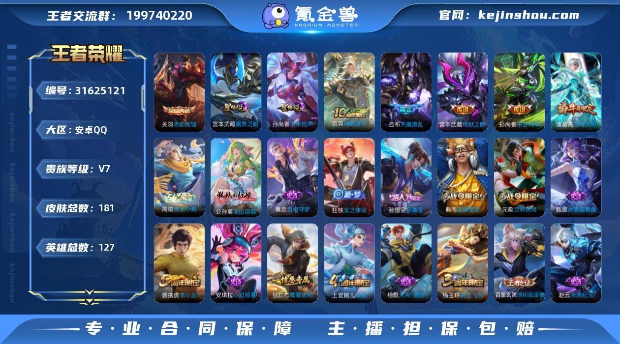 贵族等级:V7 典藏皮肤数:1 珍品无双皮肤数:0 无双皮肤数:0 珍品传说皮肤数:0 传说皮肤数:5 史诗皮肤数:31 皮肤数:181 英雄数:127 段位:星耀