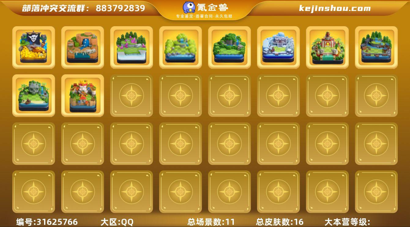 部落冲突18本苹果QQ账号250级繁荣99工人6皮肤16