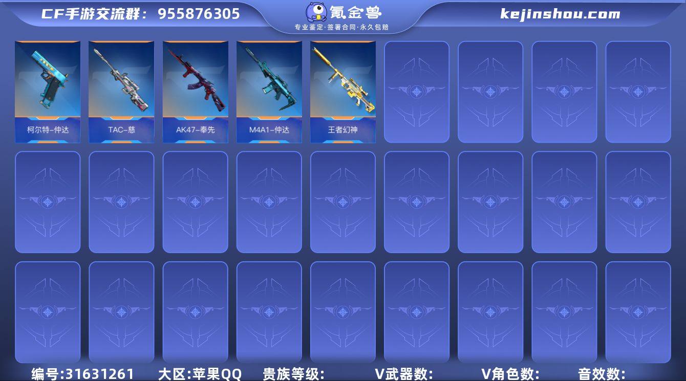 ABC9670/苹果QQ/可转区/贵8/219v/40角色/483万化/26王者武器/双/王者幻神/冰霜奇迹/仲达套/奉先/无双/TAC慈/仲康/AN94盖/王者之力/冰霜奇迹/王者之心/王者之影/王者之兽/王者之怒/王者之烈/P90雷暴王者/M12S雷霆王者/COP堕天神/王者之隐/冰霜奇迹/王者之魂/白金血钻/王者之竞手雷套/王者之兽手雷套*2/角色/蝉/零水下丽影/萝拉/炽天使X/零新生/关小雨/职场灵狐赛事经理/毁灭套/御龙套/冰锋套/幻神套/火力竞放套/堕天神套/机械迷城套/木兰套/诗仙套/毒蜂套/卧龙套/炎龙侠套/