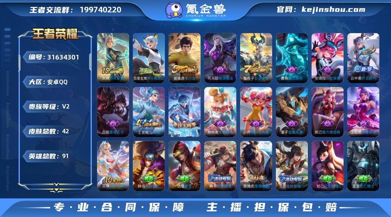 贵族6/皮肤133/传说2/史诗31/英雄123/幽冥之眼/神树通天/地狱之眼/阴阳师/皇家上将/玩趣恶龙/朔风刀(s17)/穷奇(s12)/暗影游猎/魔术师/万华元夜(s22)/星际陆战队-达摩/海滩派对/醍醐杖(s20)/冰锋战神/演武夺筹(s23)/潮玩骑士王/至尊宝/御旌(s15)/银河之约/云中旅人(s29)/驱傩正仪(s24)/遇见飞天/单词大作战/原初探秘者(s21)/混沌棋(s18)/星空之诺/疑决卦(s19)/李小龙/御狮(s13)/御霄(s14)/胡桃异想国/纤云弄巧/御銮(s16)/西部大镖客-猪八戒/狂想玩偶喵/谧流熔炉/逆浪荇歌/荣光之誓/线条小狗-周瑜/紫霞仙子/圣诞恋歌/水果甜心/暗夜贵公子/魅力维加斯/女仆咖啡/金属风暴/绅士熊喵/德古拉伯爵/乘风破浪/缤纷独角兽/黄金分割率/逐浪之夏/功夫厨神/节奏热浪/鹰眼统帅/时之恋人-孙尚香/龙之律动/百相守梦-黄忠/万灵启世/教廷特使/街头霸王/哥特玫瑰/大发明家/白执事/红桃皇后/星际陆战队(程咬金)/白色死神/化身博士/玩偶对对碰/时尚教父/少女阿狸/黄金武士/死亡骑士/拳王/兔女郎/花好人间/纽约教父/汉昭烈帝/龙腾万里/海滩丽影/霸王丸/功夫老勺/沉稳之力/幻乐之宴/虹云星官/鲨炮海盗猫/秘密基地/瓷语鉴心/缤纷绘卷/功夫炙烤/星梦巡礼/玫蓝誓约/小满鸭/死霸装/踏浪烽翎/克喵/罗小黑战记/鹤鸣心笺/逐霄之志/兰陵王雾影缉谜/福禄兄弟/生化警戒/异域舞娘/锦衣卫/万圣前夜/西部大镖客-孙悟空/仙境爱丽丝/精灵王/隐刃/地府判官/特种部队/天启骑士/战争骑士/战争女神/激情绿茵/维京掠夺者/星航指挥官/东海龙王/第七人偶/绝影神枪/街头旋风/精准探案法/午夜歌剧院/魇语军师/棒球奇才/灼热之刃/修竹墨客/露花倒影/创世神祝/森/幸存者/归虚梦演-西施/孤猎