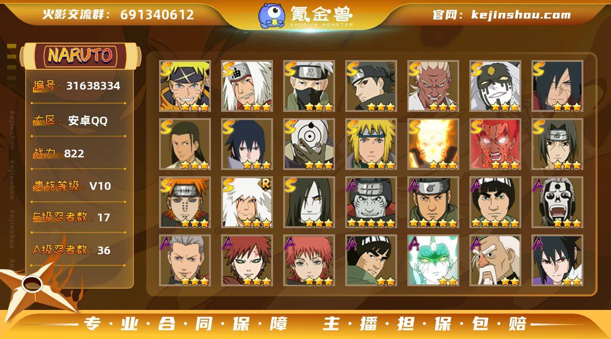 17S级忍者数-36A级忍者数 【S级忍者】:宇智波斑「秽土转生·解」(3星),艾「忍界大战」(3星),宇智波鼬「须佐能乎」(3星),宇智波止水「须佐能乎」(3星),旗木卡卡西「须佐能乎」(3星),千手柱间「木叶创立」(3星),自来也「舞之豪杰」(3星),大蛇丸(3星),自来也「传说中的三忍」(3星),波风水门(3星),漩涡鸣人「九喇嘛连结」(3星),迈特凯「死门」(3星),佩恩「天道」(3星),宇智波佐助「永恒万花筒」(3星),宇智波斑 「白面具」(3星宇智波斑「白面具」),大筒木桃式(3星),漩涡鸣人·宇智波佐助(3星) 【A级忍者】:艾「青年」(2星),长门「青年」(2星),波风水门「新春限定」(2星),迪达拉(2星),飞段(3星),飞段「死司凭血」(3星),干柿鬼鲛(5星),漩涡博人「桃式显现」(2星),迈特凯(5星),旗木卡卡西「幻之真容」(2星),桃地再不斩「漂泊武士」(2星),桃地再不斩「秽土转生」(2星),我爱罗「疾风传」(3星),我爱罗「忍界大战」(2星),蝎(3星),蝎「绯流琥」(2星),角都「秽土转生」(2星),猿飞阿斯玛(5星),宇智波鼬(2星),宇智波佐助「须佐能乎」(2星),宇智波佐助「疾风传咒印」(2星),宇智波佐助「万花筒写轮眼」(2星),宇智波佐助「侠隐江湖」(2星),照美冥「五代目水影」(2星),日向宁次「忍界大战」(2星),日向雏田「最终章」(2星),长十郎「六代目水影」(2星),李洛克「忍界大战」(2星),黑土「博人传」(2星),秋道丁次「忍界大战」(2星),千代「近松十人卫」(2星),不缘(2星),宇智波泉奈(2星),大野木「侠隐江湖」(2星),巳月「仙人模式」(2星),迈特凯「青春爆炸」(2星)