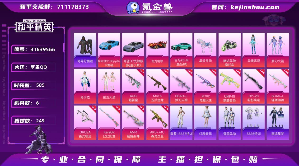 有各种稀有套装,如红眼罩,奇异狩猎者,蓝螳螂,长安公主等各种自带动作的紫装