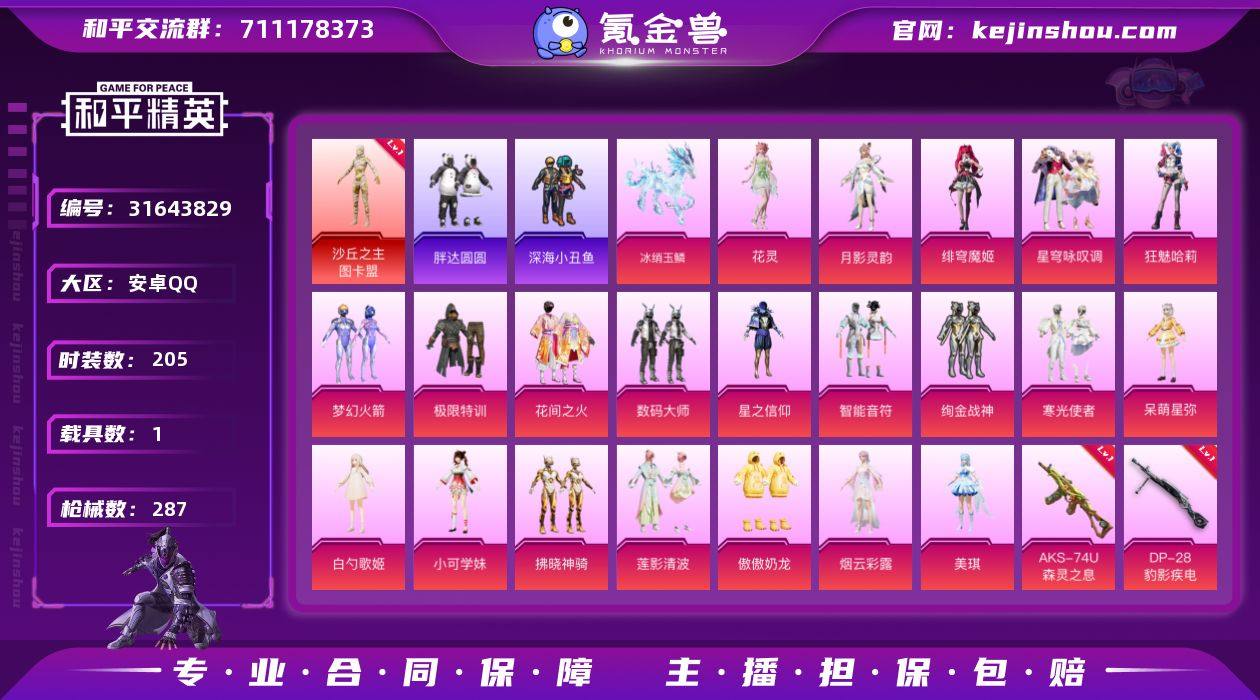 kk2300655-KK2201 苹果微信-17王牌印记-33粉装-15特效枪-3载具-热力值-316套装-372枪皮-1卓越印记-1传奇印记-】都市猎人,派对舞王,奇异狩猎者,暗影哥特,深海小丑鱼,浪漫天命,雪山精英,迅捷狂鲨,明日香款战斗服,小丑鱼,龟仙人,零款战斗服,东方飞龙-188碎片-地铁42点天赋-研究所2级 【33粉装】套装-银河战甲,套装-恐龙拽拽,套装-极限特训,套装-绒雪飘舞,套装-霁雪冰心,套装-怪诞乔克,角色-洛天依,套装-第五大道,套装-冰霜白皇,套装-精灵娃娃,套装-筑梦精灵,角色-零号机款机体服,套装-紫电风暴,角色-星空武士,套装-梦幻火箭,套装-碧影闪光,套装-焦糖拿铁,套装-寒光使者,套装-幻影战神,角色-复仇流浪者,套装-彩虹鹿灵,套装-彩装战姬,套装-赤焰黑爵,套装-绚丽摇曳,套装-冰川红玫,套装-炙焰红王,套装-缤纷油彩,套装-潮汐统领,套装-霞光圣骑,套装-傲雪凌霜,套装-数码大师,套装-未来战士,套装-闪耀律动 【15特效枪】M416-至情至圣/8级,P90-魔童闹海 敖丙/3级,M249-绒雪飘舞/5级,MG3-洛神天依/5级,M249-绝对恒星/1级,AKM-盖世英雄/8级,DP-28-幻梦音符/5级,蜜獾-荧海星豚/4级,DP-28-豹影疾电/5级,UZI-绮梦青鸾/5级,M762-甜心娃娃/5级,AKM-炫紫旋律/3级,M416-心之恋语/5级,GROZA-焦糖拿铁/5级,SCAR-L-机甲封神/5级 【13稀有紫装】都市猎人,派对舞王,奇异狩猎者,暗影哥特,深海小丑鱼,浪漫天命,雪山精英,迅捷狂鲨,明日香款战斗服,小丑鱼,龟仙人,零款战斗服,东方飞龙 【3稀有载具】冰绡玉鳞,玛莎拉蒂Ghibli(粉),兰博基尼URUS(明艳黄) 【316稀有时装】梦幻火箭,零号机款机体服,怪诞乔克,缤纷油彩,极限特训,第五大道,洛天依,幻影战神,SS35特训,SS31特训,SS33特训,SS32特训,SS36特训,蓝冰羽,玄霖雨神,SS34特训,朱霞炽焰,紫幽梦,狂鲨锋刃,都市猎人,浪漫天命,奇异狩猎者,龟仙人
