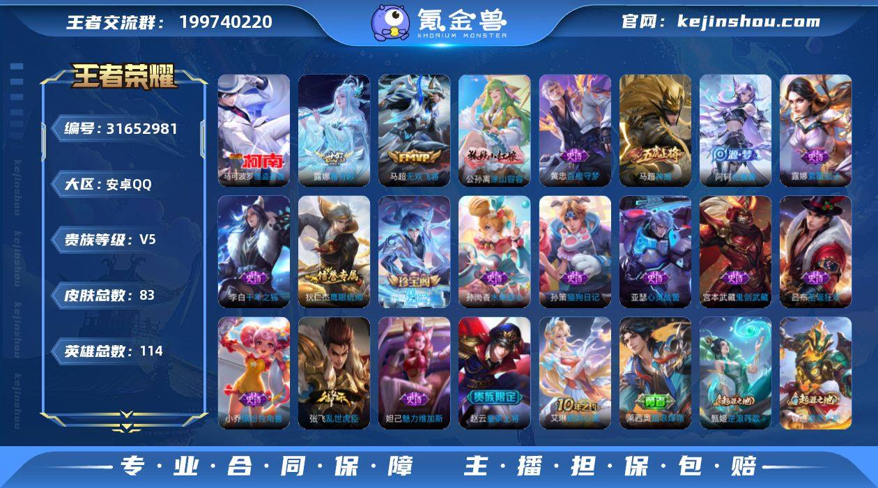 贵族5/皮肤83/传说3/史诗17/英雄114/影全皮/怪盗基德/神树通天/霜月吟/无双飞将/天穹之誓(s36)/阴阳师/皇家上将/万华元夜(s22)/海滩派对/演武夺筹(s23)/驱傩正仪(s24)/原初探秘者(s21)/混沌棋(s18)/疑决卦(s19)/擒涛扼浪(s31)/探海日志(s32)/古海寻踪(s33)/鬼谷子天穹祈灯(S34)/剑破天穹(s35)/熔金海岸/噬灭天穹(s37)/谧流熔炉/虚灵犬护/逆浪荇歌/紫霞仙子/鬼剑武藏/水果甜心/魅力维加斯/圣诞狂欢/千年之狐/乱世虎臣/缤纷独角兽/心灵战警/猫狗日记-孙策/鹰眼统帅/神威/万物之道/化蝶舞/百相守梦-黄忠/涂山容容/教廷特使/街头霸王/哥特玫瑰/东方不败/救世之瞳/黄金武士/死亡骑士/兔女郎/纽约教父/汉昭烈帝/功夫老勺/沉稳之力/丁香结/乓乓大师/零食大作战/功夫炙烤/敬我三分/苍林狼骑/铁骨偃魂/魅影绮裳/雪境奇遇-西施/玫蓝誓约/踏浪烽翎/鹤鸣心笺/剑舞者/西部大镖客-孙悟空/特种部队/加勒比小姐/天启骑士/战争骑士/芝加哥教父/东海龙王/第七人偶/龙域领主/踏雪寻梅/花见巫女/棒球奇才/灼热之刃/创世神祝/归虚梦演-曜/幸存者/启蛰/赤焰之缨