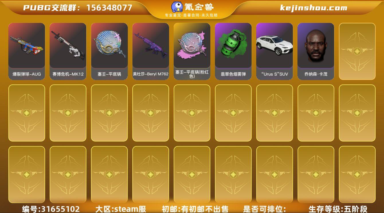 段位:黄金 生存等级:五阶段 4级魔咒之力-Mk12,4级猪八戒-M416,1级G-DRAGON-AUG,1级猛虎猎手-KAR98K 阿斯顿马丁SUV,马丁奢侈版跑车 卖家说:好号不等人,买到就是挣到