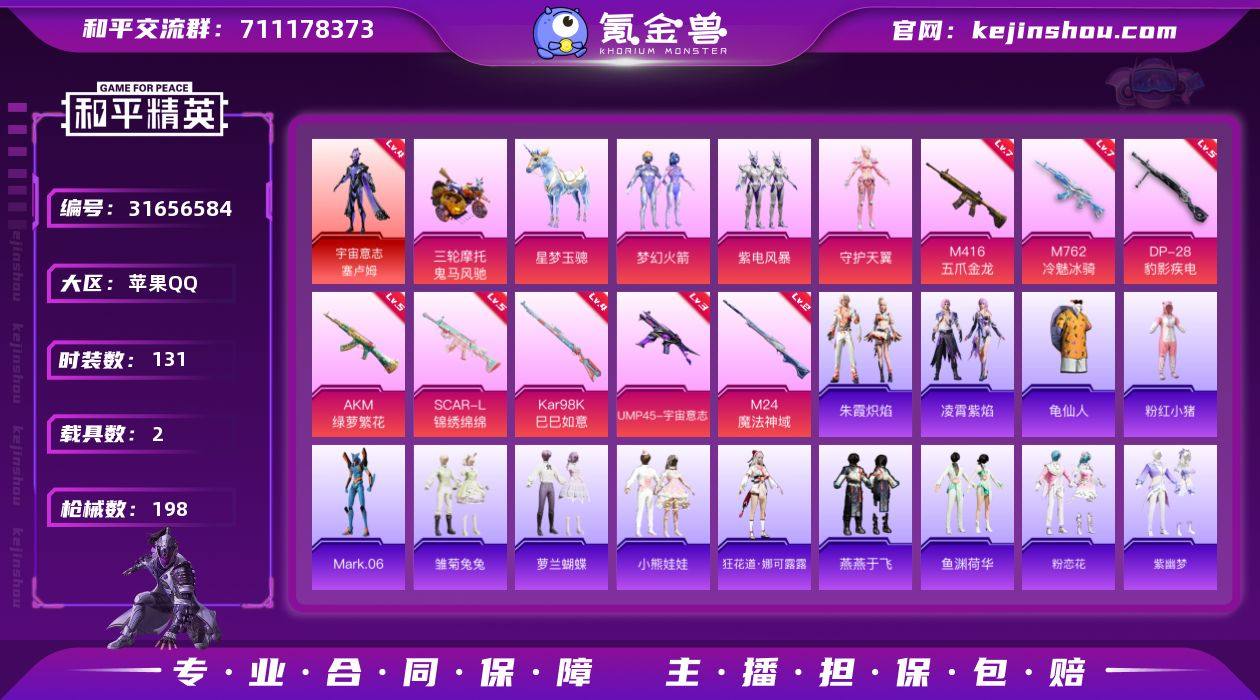安卓 手Q-19粉装-14特效枪-1载具-6粉色飞行器-106347热力值-19王牌印记-260套装-341枪皮 【热门品类】:套装-浪漫天命,套装-都市猎人,套装-深海小丑鱼,套装-小丑鱼,套装-胖达团团,套装-忍者信条,套装-龟仙人,套装-暗影哥特,套装-粉红小猪,套装-红熊茄茄 【粉色套装】:角色-绝对恒星,粉装-幻影战神,粉装-未来战士,粉装-智能音符,粉装-放客神游,粉装-绚金战神,粉装-星之彼岸,粉装-花影阑珊,粉装-闲梦青缨,粉装-傲傲奶龙,套装-创世·救赎,粉装-桃粉嫣然,角色-狂魇小丑,角色-宁雨蝶,角色-奇迹舞步 雅雅,角色-奇迹舞步 美琪,角色-冰魄,角色-羊梦糖心,角色-异瞳寒姬 【粉色枪皮等级】:AKM-绿萝繁花(五级),SCAR-L-锦绣绵绵(五级),M416-心之恋语(七级),M416-电玩时刻(五级),GROZA-镜光银凌(五级),AUG-暖羊咩咩(五级),M762-青锋波束(五级),蜜獾-异瞳寒姬(四级),AKS-74U-森灵之息(五级),Kar98K-巳巳如意(五级),SLR-暗夜玫瑰(六级),AMR-智耀战神(六级),DP-28-千金淑猫(三级),DP-28-豹影疾电(五级) 【粉色载具】:晶梦灵驹 【粉色枪皮】:AKM-绿萝繁花,SCAR-L-锦绣绵绵,M416-心之恋语,M416-电玩时刻,GROZA-镜光银凌,AUG-暖羊咩咩,M762-青锋波束,蜜獾-异瞳寒姬,AKS-74U-森灵之息,Kar98K-巳巳如意,SLR-暗夜玫瑰,AMR-智耀战神,DP-28-千金淑猫,DP-28-豹影疾电 【粉色飞行器】:绝对恒星飞行器,萌物绒绒飞行器,飞天猪飞行器,暮色之舞飞行器 【粉色降落伞】:绝对恒星降落伞,极限特训降落伞,幻影战神降落伞,碧影闪光降落伞,恐龙拽拽降落伞,旋转彩虹降落伞,第五大道降落伞,莲影清波降落伞,江南烟雨降落伞,巴啦啦小魔仙降落伞,精灵梦叶罗丽降落伞,星梦奇缘降落伞,金丰海韵降落伞,千金淑猫降落伞,晶梦幻蝶降落伞,喜羊羊与灰太狼降落伞,魔童闹海 敖丙降落伞,...