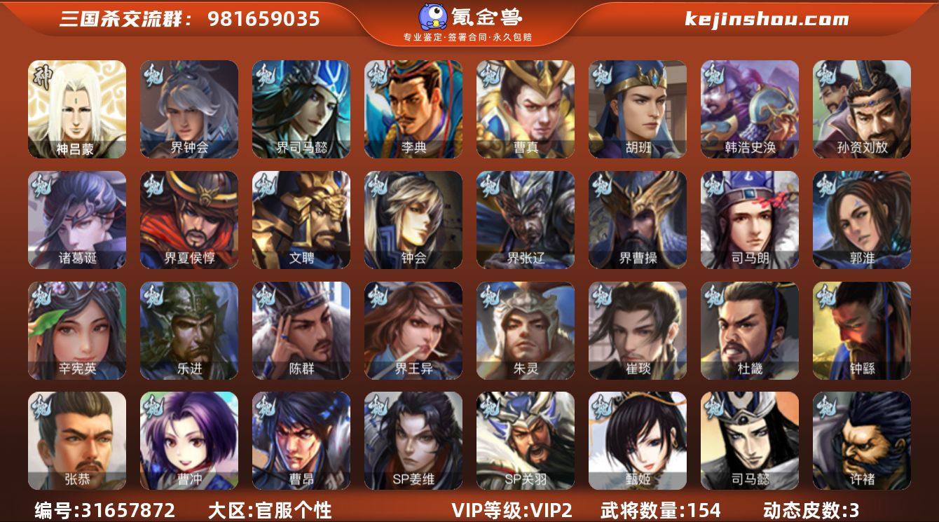 66宝珠先锋号,66宝珠,笮荣,回廊动白马,乌鸦动态界钟会,董允,贺齐5史诗,神吕蒙,崔琰,关银屏,谋卢植,界吕布,胡班,张恭,界曹植,界简雍,界马超,彭恙,界朱治,孙邵,谋庞统,周鲂,濮阳兴,界韩当,贾充,界伏皇后,金皮界双头,王濬154将,国战52将,4.6万豆,满级活树