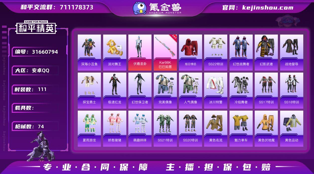 XQ1021+【双马尾金鞋素材号 地铁满天赋48点1粉2特效1飞行器 2太阳】安卓Q区无二次-1粉装-2特效枪-22813热力值-2王牌印记-81套装-74枪皮【优质套装】: 伏羲圣卦【特效枪等级】:Kar98K-巳巳如意(五级- Kar98K-巳巳如意)【优质武器皮肤】: Kar98K-巳巳如意【稀有武器皮肤】: DBS-乌木金纹 Kar98K-巳巳如意 UZI-冰河战士 蜜獾-乌木金纹 PKM-啾咪啾咪 M416-红色方程式 M416-蓝色火焰 AKM-彩虹符号 AKM-破晓战魂 AKM-萌趣颜团子 SCAR-L-红色方程式 SCAR-L-玉兔迎春 SCAR-L-炫彩节奏 M16A4-幻世战舞者 AUG-耀粉歌者 AUG-甜蜜菠萝 M762-奇异狩猎者【其他套装】: 派对舞王 恋语绒绒 樱梦幻音 伏羲圣卦 深海小丑鱼 龟仙人 异域银装 冰河战士 鱼渊荷华 俏兔智灵 燕燕于飞 战术大师 智谋强哥 巳巳如意 元素星魂 SS28特训 福星高照 都市漫游者 虎虎生威吉莉 白熊同盟 特训学院 红色运动 黄色运动 蓝色运动 黄色伏地魔 白色伏地魔 酒红色名流 湖蓝色名流 黄色名流 绯格组合 黑色伏地魔 竞技名士 深蓝色名流 猛禽 长空猛禽 旭日情侣 冷焰舞者 魅力单车 贵族骑装 幻世战舞者 战地督导 牛气满满 萌趣咩咩 娇憨猪猪 冰川特警 夏雨游龙 极速红龙 完美偶像 人气偶像 幻影武者 破蛋小黄鸡 蓝彩潮人 绮丽涂鸦 破晓战魂 幻世保卫者 霓虹街区 森林游猎者 都市魅力【优质飞行器】: 异域银装飞行器