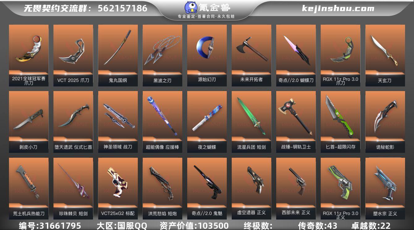 传奇数:43 卓越数:22 皮肤资产价值:103500 卖家说:21冠军套 资产103500vp