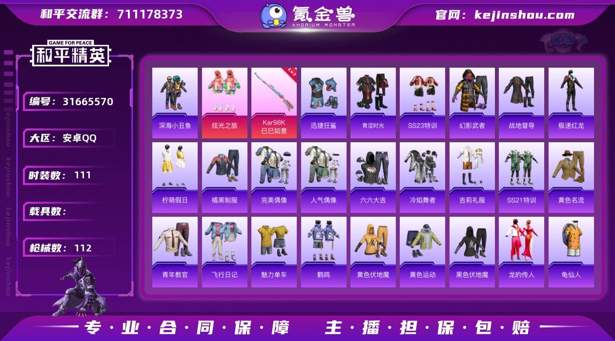 XQ1027+【双字id 双马尾身法素材号 1粉3角色2特效4飞行器地铁满天赋48点可二次】安卓Q区-1粉装-2特效枪-31466热力值-10王牌印记-99套装-112枪皮【优质套装】: 炫光之旅【特效枪等级】:Kar98K-巳巳如意(五级【稀有武器皮肤】: DBS-乌木金纹 Vector-创世·救赎 蜜獾-精灵梦叶罗丽 SCAR-L-海盐豹豹 Kar98K-巳巳如意 Mk14-冰河战士 UZI-冰河战士 20-H-乌木金纹 蜜獾-乌木金纹 PKM-啾咪啾咪 M416-红色方程式 M416-蓝色火焰 M416-糯团青竹 AKM-彩虹符号 AKM-缤纷海域 AKM-破晓战魂 AKM-龙的传人 SCAR-L-红色方程式 SCAR-L-玉兔迎春 SCAR-L-夜灯 M16A4-红色方程式 M16A4-蓝色火焰 AUG-耀粉歌者【其他套装】: 恋语绒绒 炫光之旅 深海小丑鱼 迅捷狂鲨 龟仙人 龙魂突击队 异域银装 白糯汤圆 街头风暴 SS30特训 战术大师 蝶变 巳巳如意 元素星魂 SS28特训 SS29特训 无暇誓言 龙的传人 萌黄之夏 特训学院 猎鹰 青年教官 橘黑制服 红色运动 黄色运动 蓝色运动 黄色伏地魔 白色伏地魔 酒红色名流 湖蓝色名流 黄色名流 绯格组合 漫步者 空岛之星 黑色伏地魔 竞技名士 深蓝色名流 猛禽 雨林探路者 长空猛禽 特战装甲 六六大吉 街头潮人 冷焰舞者 魅力单车 灼焰舞者 战地督导 特殊使命 青涩时光 春日漫步 极速红龙 完美偶像 人气偶像 幻影武者 破蛋小黄鸡 蓝彩潮人 绮丽涂鸦【优质飞行器】: 炫彩糖果飞行器 异域银装飞行器