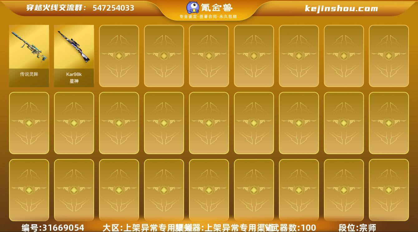段位:宗师 VIP等级:6 V武器数:100 传说灵眸 Kar98k-星神