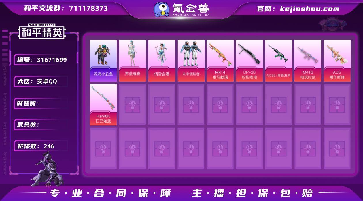 【0载具 6特效枪 3粉装 246枪皮 166套装】6.9万热力值/套装-深海小丑鱼,套装-俏雪含霜,套装-老实芭蕉,角色-Mark.06,套装-未来领航者,角色-霁蓝缠春.M762-青锋波束,M416-电玩时刻,AUG-暖羊咩咩,Kar98K-巳巳如意,Mk14-福马献瑞,DP-28-豹影疾电等D,编号:LXLPF61