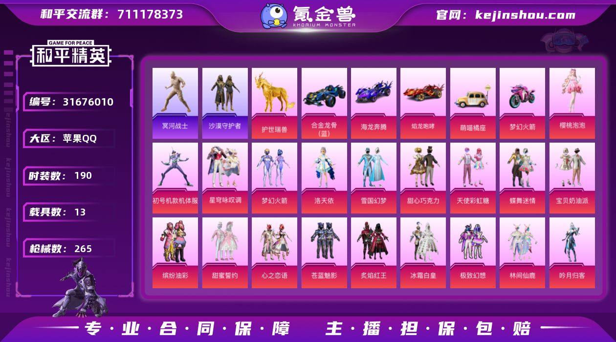 【木乃伊紫螳螂黑丝冰雪女王14载具30粉装12特效枪身法素材号 秒换绑不用等】 苹果Q区-124983热力值-15印记-190套装-265枪皮 【14载具】 玛莎拉蒂粉色 护世瑞兽 玛莎拉蒂金色 兰博轿车尊享铂 兰博SUV黄色 特斯拉R水滴蓝 特斯拉R沁心粉 合金龙骨蓝色 焰龙咆哮 海龙奔腾 萌喵橘座 空客蔚蓝之翼僚机 双人摩托梦幻火箭 兰博SVJ炫光金【3稀有】 木乃伊 沙漠守护者【30粉装】 初号机款机体服(紫螳螂) 林间仙鹿 梦幻火箭 雪国幻梦(冰雪女王) 宝贝奶油派 天使彩虹糖 甜心巧克力 缤纷油彩(猪脸妹) 洛天依 甜蜜誓约 心之恋语 极致幻想 冰霜白皇 暗夜玫瑰 绚金瑰梦 蓝莓炮弹 蝶舞迷情 炙焰红王 吟月归客 飒粉甜心 白勺歌姬 呆萌星弥 小可学妹 苍蓝魅影 角色-樱桃泡泡 星穹咏叹调【12特效枪】 M416-五爪金龙(7级) AKM-炫紫旋律(5级) M762-甜蜜誓约(5级) SCAR-L-童趣迷兔(6级) SLR-暗夜玫瑰(3级) MG3-洛神天依(7级) M249-蓝莓炮弹(4级) Vector-环太平洋(5级) Kar98K-巳巳如意(5级) 破片手榴弹-瓶中星球(5级) AUG-暖羊咩咩(5级) DP-28-豹影疾电(5级)【189热门】 浪漫天命 潮萌小黄鸭 鹰眼刺客 破蛋小黄鸡 激萌罗小黑 大橘为重 浪漫波比 军刀雅典娜 英勇保护者 暗夜契约 暗影哥特(红眼罩) 醒狮腾龙 团圆交子 瑞龙福将 纯白誓言 豚鼠丹丹 狂沙舞者 M762-风花雪月 彩虹鹿灵 GROZA-林间仙鹿 缤纷焰火 SS26特训 SS25特训 SS24特训 SS23特训 SS22特训 Mk47-洛神天依 Mk14-绚金瑰梦 Mini14-梦幻火箭 AWM-飒粉甜心 AKM-环太平洋 SCAR-L-玉兔迎春 GROZA-田园牧歌 M762-天降萌叽 M762-彩虹符号 Mk47-乌木金纹 SKS-糯团青竹 Mini14-旋转彩虹 UZI-娇憨猪猪 M416-夜灯 DBS-彩虹符号 M249-彩虹符号 MG3-幻世战舞者 AKM-虎虎生威 AKM-霓虹街区