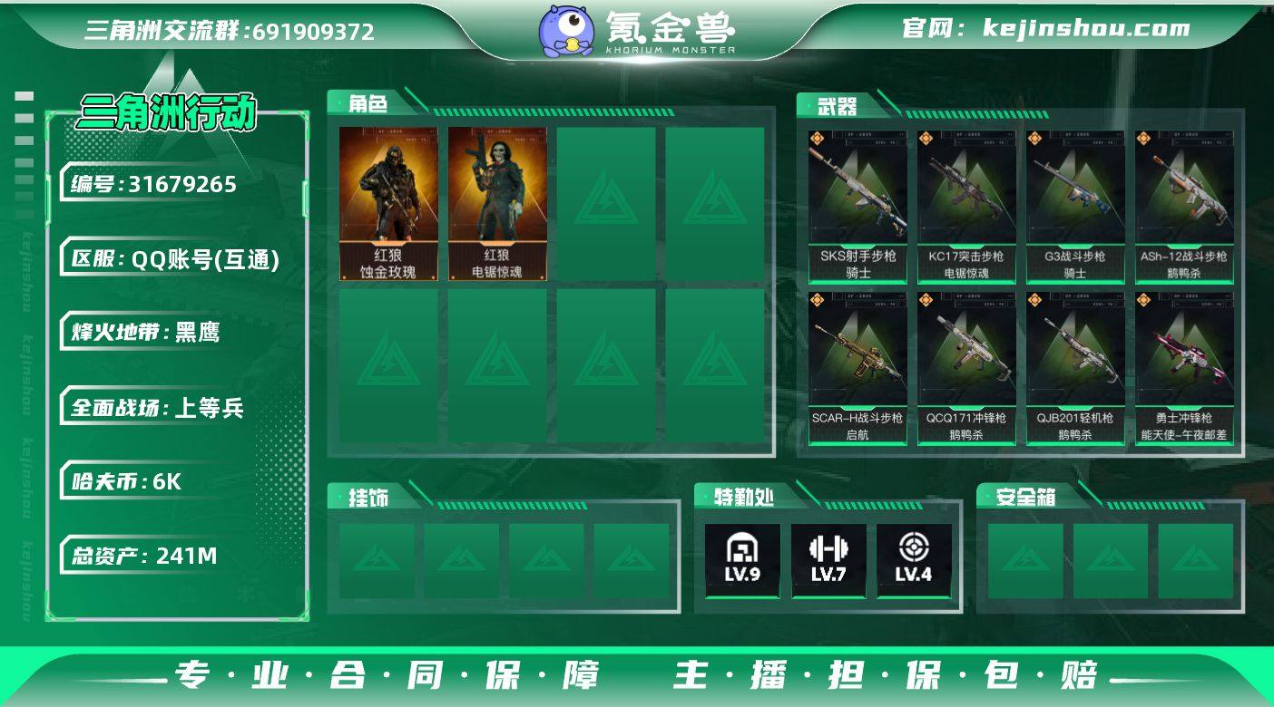 【SJZG3727】总资产(M):241M/哈夫币(K):6K/哈夫币(K):6K/传说枪皮数:18/全面战场等级:46_段位:上等兵/烽火地带等级:60_段位:黑鹰/红狼-蚀金玫瑰/红狼-电锯惊魂/近战-黑鹰/M4A1突击步枪-蚀金玫瑰/M4A1突击步枪-阿米娅/ASh-12战斗步枪-鹅鸭杀/AK-12突击步枪-特斯拉线圈/SCAR-H战斗步枪-启航/G3战斗步枪-骑士/CAR-15突击步枪-阿米娅/腾龙突击步枪-捞点薯条/KC17突击步枪-电锯惊魂/Vector冲锋枪-能天使-午夜邮差/UZI冲锋枪-特斯拉线圈/SR-3M紧凑突击步枪-特斯拉线圈/勇士冲锋枪-能天使-午夜邮差/QCQ171冲锋枪-鹅鸭杀/QJB201轻机枪-鹅鸭杀/SKS射手步枪-骑士/AWM狙击步枪-捞点薯条/93R-捞点薯条/K416突击步枪-冬日风情/K416突击步枪-阿萨拉特攻/SCAR-H战斗步枪-囚徒/MP5冲锋枪-战术竞备/MP5冲锋枪-竞技风/Vector冲锋枪-猎鳄行动/SR-3M紧凑突击步枪-战术竞备/勇士冲锋枪-深海恐惧/勇士冲锋枪-工业狂潮/M250通用机枪-囚徒/QJB201轻机枪-炽焰/SV-98狙击步枪-林中猎手/SV98狙击步枪-猎鳄行动/R93狙击步枪-竞赛选手/M700狙击步枪-竞技风/M700狙击步枪-哈夫克警备/沙漠之鹰-曙光/AKM突击步枪-肃杀/QBZ95-1突击步枪-公平竞技/M16A4突击步枪-街头涂鸦/AUG突击步枪-全金属外壳/M7战斗步枪-精英联盟/M7战斗步枪-捣蛋鬼/SG552突击步枪-贴花艺术/SCAR-H战斗步枪-荣耀列队/腾龙突击步枪-冰天雪地/MP5冲锋枪-弄臣/MP5冲锋枪-虎啸/MP5冲锋枪-哈夫克卫队/P90冲锋枪-医疗协议/P90冲锋枪-黄昏/Vector冲锋枪-先锋/UZI冲锋枪-前沿科技/UZI冲锋枪-精英联盟/UZI冲锋枪-亚特兰蒂斯/野牛冲锋枪-前沿科技/野牛冲锋枪-公平竞技/SMG-45冲锋枪-前沿科技/SMG-45冲锋枪-行动开启/SMG-45冲锋枪-幻影结构/勇士冲锋枪-前沿科技/勇士冲锋枪-冰天雪地/M1014霰弹枪-幻影结构/S12K霰弹枪-前沿科技/M249轻机枪-战损/M249轻机枪-冰天雪地/QJB201轻机枪-...