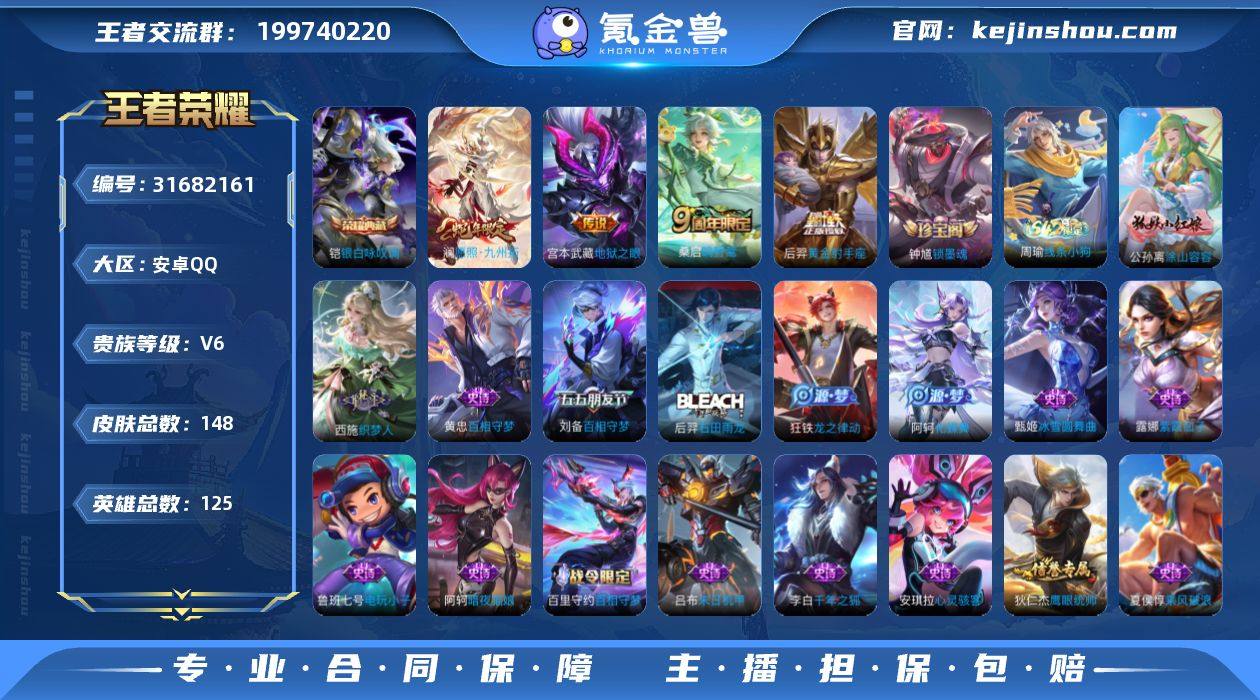 安卓Q 可二次 1典藏4传说125英雄148皮肤 银白咏叹调 愿照九州拓 鸣野蒿 黄金射手座 地狱之眼 涂山容容 猎兽之王 冰冠公主 暗夜猫娘 电玩小子 龙骑士 织梦人 黄忠百相守梦 燃音魔法 刘备百相守梦 暗隐猎兽者 金属风暴 地狱岩魂 特工战影 蔷薇恋人 千年之狐 紫霞仙子 功夫厨神 心灵骇客 圣诞恋歌 乘风破浪 末日机甲男 绅士熊喵 偶像歌手 街头霸王 乐园奇幻夜 摇滚巨星 缤纷独角兽 鬼剑武藏 冰雪圆舞曲 花好人间 克喵 未来纪元赵云 重装意志 拳王 大漠名商 敏锐之力 云中旅人 海盐诗旅 皇家上将 擒涛扼浪 探海日志 水果甜心 古海寻踪 天穹祈灯 江河有灵 鹰眼统帅 魔术师 王者荣耀账号