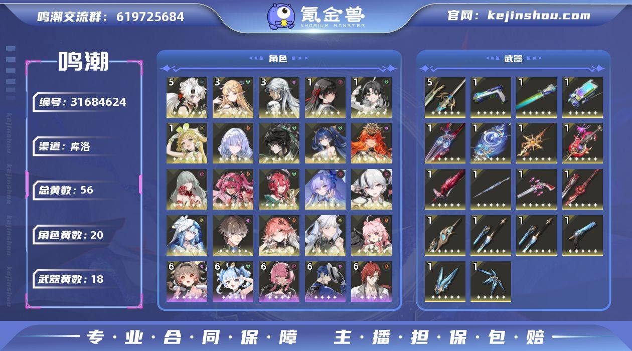 官服活绑,80级成品号,配队齐全,上手直接玩。 卡提希娅3+1 卡夏千 日月守 安全无违规,纯手工养成,下单秒换绑。 账号目前还在玩,所以号上资源每天都会增加一点。