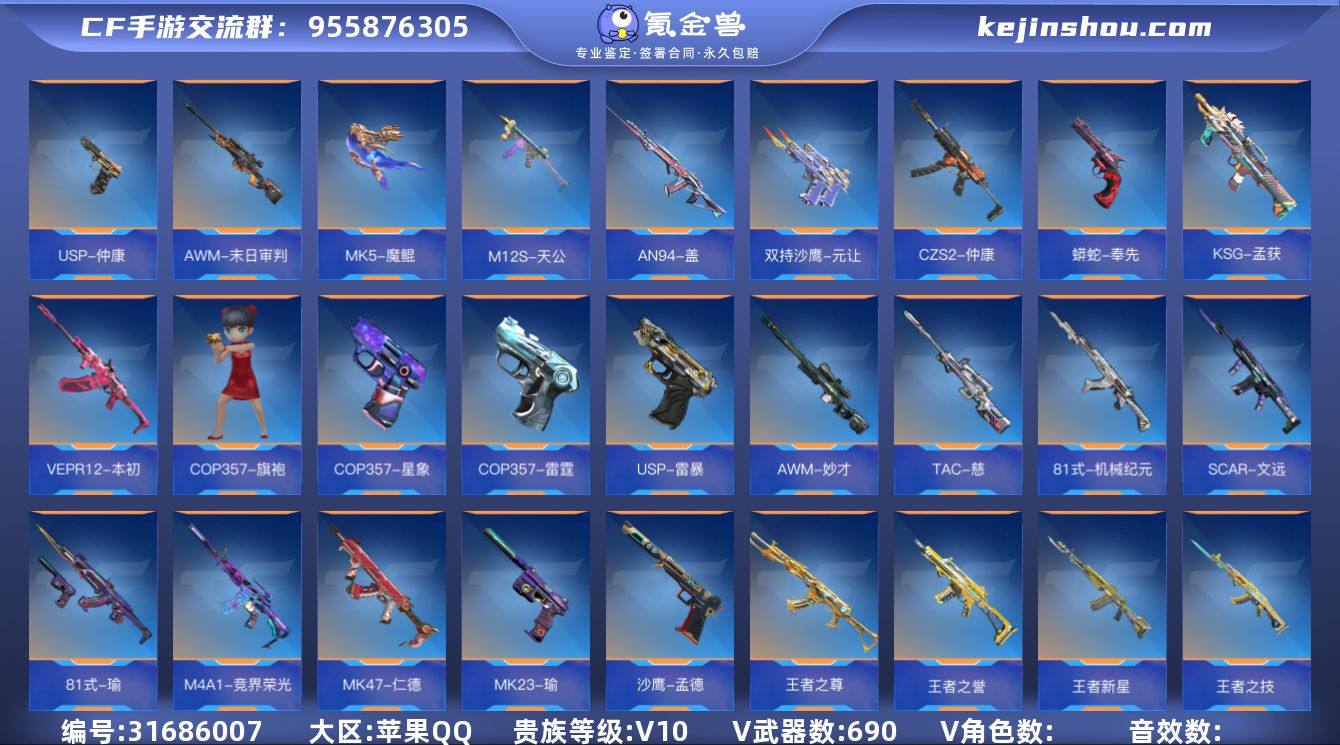 ✨极品全能V10 双王者角色 全一线主武!19至尊7同框+紫电(王力 王幻 王魄)冰皮(王翼 王魄 王戮 王武 M4雷霆王者 王幻 王怒 王者蔷薇)冠军皮(王翎 王势 王圣 王腾)拉丝皮(王力 王翼 王影 王魄)火皮(王怒 王幻)+多一线带皮三国+10王者雷套(2套核弹)+7王锋(1紫电-1冰皮-1火皮-4拉丝皮)+超多英雄级COP+2王者角色 全女团角色+详情看描述 截图!新氪很多!!!✨『690V-VIP10-等级174-显血戒』戮至尊/力至尊/影至尊/翼至尊/武至尊/心至尊/魄至尊/怒至尊/魄至尊/烈至尊/腾至尊/翎至尊/兽至尊/M4A1-雷霆王者至尊/蝶至尊/M12S-雷霆王者至尊/竞至尊/技至尊/誉至尊/ 【王者武器】:/王者之力-紫电熔岩-HeartShot-/王者幻神-紫电熔岩-燃竞之巅-冰霜奇迹/王者之怒-燃竞之巅-冰霜奇迹/王者之魄-紫电熔岩-HeartShot-冰霜奇迹/王者之腾-冠军EP/M4A1-雷霆王者-冰霜奇迹/王者之技/王者之翎-冠军EP/王者之圣-冠军EP/王者之势-冠军EP/王者之竞/王者新星/QBZ03-王者蔷薇-冰霜奇迹/王者之翼-HeartShot冰霜奇迹/王者之戮-冰霜奇迹/王者之武-冰霜奇迹/王者之心-白金血钻-冰霜奇迹/王者之影-HeartShot冰霜奇迹/王者之魄-冠军珍藏/王者之兽-冰霜奇迹/王者之尊/王者之誉/王者之神-冰霜奇迹/王者之狱-冰霜奇迹/王者之烈-冰霜奇迹/M12S-雷霆王者-冰霜奇迹/王者之蝶/COP357-雷霆王者-冰霜奇迹*2/王者之业-冰霜奇迹/王者之隐*3-冰霜奇迹/王者之魂*2/王者之轮*2/王者之灵-白金血钻/王者之迹-燃竞之巅/王者之锋*7(1紫电-1冰皮-1火皮-4拉丝皮)王者之破/雷霆王者之锋/王者之仞/王者之击-冰霜奇迹/王者之啸*3/王竞雷套/雷霆王者雷套*2/王兽雷套/王心雷套*2/王翼雷套*2/王影雷套/王圣雷套/ 【热门武器】:/81式-瑜/M200-权-江东骇虎/AK47-孟德-过载/AK47-奉先-无双/AK47-元让-过载/M4A1-星象-璀璨星辰·四圣兽/VEPR12-本初/M4A1-仲达-烽火...