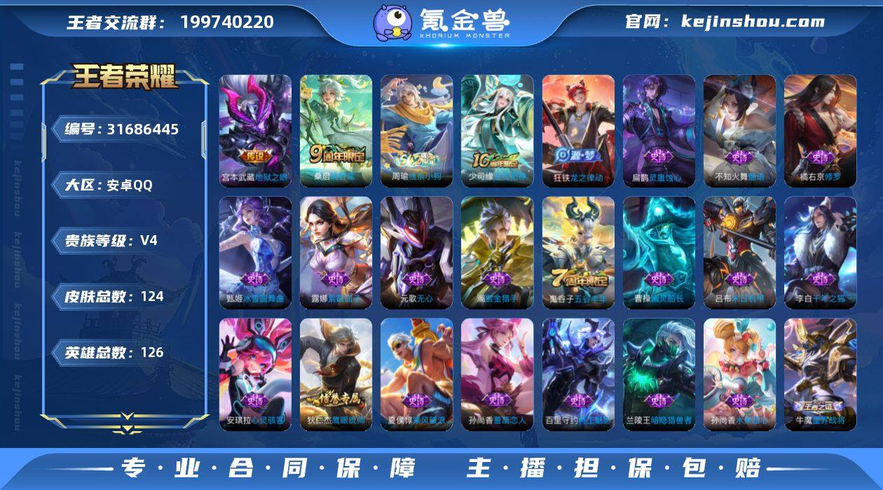 【aswz977】安卓Q-V6-尊贵铂金I段位-100英雄-83皮肤-5传说-14史诗 【传说皮肤】:桑启鸣野蒿,典韦战鼓燎原,澜电玩雷克斯,露娜启示之音,孙悟空地狱火 【限定皮肤】:姜子牙天穹之誓,狄仁杰阴阳师,赵云皇家上将,墨子降魔,孙尚香蔷薇恋人,狄仁杰魔术师,项羽海滩派对,露娜启示之音,李元芳云中旅人,鬼谷子五谷丰年,鲁班大师探海日志,桑启海盐诗旅,张良古海寻踪,鬼谷子天穹祈灯,刘邦剑破天穹,刘备异域游侠 【赛季限定】:张良古海寻踪,李元芳云中旅人,鲁班大师探海日志,桑启海盐诗旅,鬼谷子天穹祈灯,刘邦剑破天穹,姜子牙天穹之誓 【史诗皮肤】:赵云皇家上将,甄姬冰雪圆舞曲,狄仁杰魔术师,宫本武藏鬼剑武藏,孙尚香蔷薇恋人,墨子金属风暴,吕布末日机甲,百里守约特工魅影,铠曙光守护者,阿轲节奏热浪,狄仁杰鹰眼统帅,鬼谷子五谷丰年,墨子降魔,黄忠百相守梦 【其他皮肤】:项羽海滩派对,韩信教廷特使,露娜哥特玫瑰,赵云白执事,白起白色死神,妲己少女阿狸,典韦黄金武士,亚瑟死亡骑士,达摩拳王,甄姬花好人间,刘备万事如意,狄仁杰阴阳师,刘备纽约教父,关羽龙腾万里,李白敏锐之力,鬼谷子幻乐之宴,苏烈坚韧之力,鲁班大师乓乓大师,典韦铁甲之心,李元芳云中旅人,桑启海盐诗旅,牛魔牛运亨通,鲁班大师探海日志,张良古海寻踪,鬼谷子天穹祈灯,刘邦剑破天穹,大司命暗都幽影,刘备异域游侠,姜子牙天穹之誓,盘古敬我三分,亚瑟动物派对,苍苍林狼骑,太乙真人谧流熔炉,明世隐景韶洛都,戈娅玫蓝誓约,刘备浪漫序章,钟馗虚灵犬护,苏烈春野闲踪,阿古朵布丁狗之约,露娜命运加冕,庄周锦麟游梦,莱西奥踏浪烽翎,鬼谷子克喵,亚瑟荣光之誓,艾琳鹤鸣心笺,鲁班七号木偶奇遇记,钟无艳生化警戒,张良一千零一夜,孙膑未来旅行,兰陵王隐刃,马可波罗激情绿茵,苍维京掠...