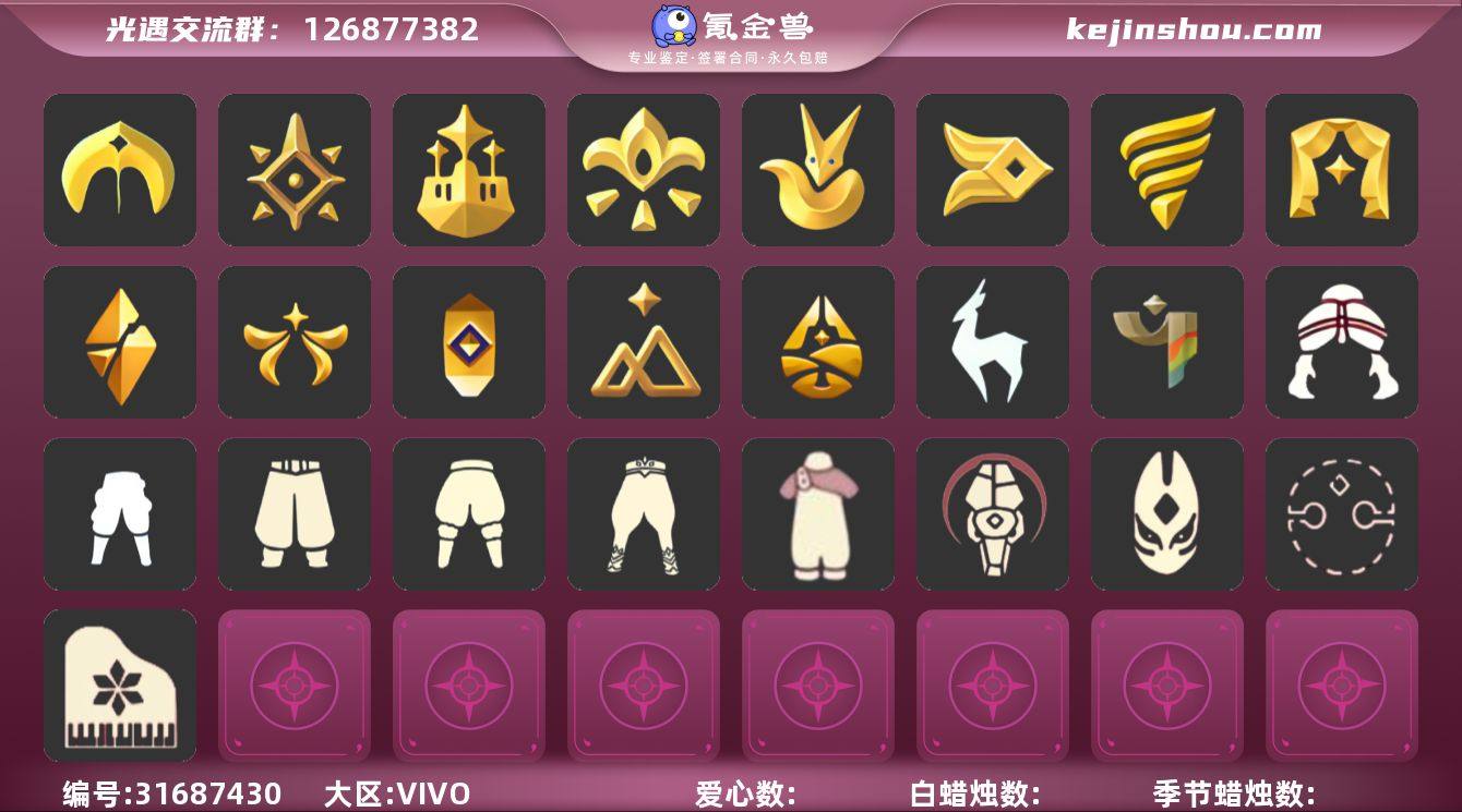 白枭玫瑰花武士裤巫师帽蝙蝠斗装绊爱套悦动跑鞋透明蝶翼盲僧眼罩"资源:蜡烛1048 爱心288 红烛74 翼12 已毕业地图:晨岛 云野 雨林 霞谷 暮土 禁阁 毕业季节:梦想季 集结季 小王子季 风行季 潜海季 表演季 破晓季 欧若拉季 追忆季 夜行季 拾光季 归巢季 半九色鹿季 毕业季节物品:凤凰面具 凤凰斗篷 队长面具 双耳锅帽 胜利号角 连帽斗篷 小王子发型 小王子套装 玫瑰花 多羽发饰 蓝黄羽袖 暗红斗篷 单边小辫 氧气面具 燕尾斗篷 黄眉企鹅面具 白枭发型 双翼遥鲲斗篷 冥龙斗篷 留辨蘑菇头 高领舞服 透明蝶翼斗 肩带 追忆之书 棕熊面具 绒毛斗篷 粗框眼镜 季卡相机 西部帽 五塑彩羽发 五塑彩带斗 稀有礼包:悦动跑鞋 南瓜头 巫师帽 绊爱套装 橘子发饰 鲤鱼发饰 神鹿头饰 彩虹耳钉 彩虹耳机 巫树犄角 蝙蝠斗 冥龙号角 玫瑰花 冥龙号角 玫瑰花 热门裤子:背带裤 遥鲲长裙 绑带舞服 墨绿长裤 奔月长裙 白棉裤 搓澡巾 紧身连体衣 武士裤 王子服 羽袖长袍 小丑服 女仆围裙 悦动跑鞋 热门面具:矮人面具 狐狸面具 黄鼠狼面具 兔头 凤凰面具 集结面具 潜海面具 黄眉面具 一字眉 棕熊面具 盲僧眼罩 龙头 玫瑰花面具 黑脸 黑框眼镜 热门发型:海草头 爆炸头 大胡子 小飞象 雨妈 卡卡 平菇 龙骨 指甲盖 斗笠 蝴蝶结 公主头 粗辫 水母头 书虫 总裁头 正太头 高马尾 明制帽 郡主头 箬笠 锅盖头 绿丝带 虚荣 小王子发型 白枭 圆环发辫 留辫蘑菇头 李逍遥发型 彩色脏辫 彩羽发型 兔子头 樱花头 猫耳 女巫发型 圣诞帽 光头 南瓜头 巫师帽 绊爱 热门头饰:毕业羽毛 尖角牛仔帽 牛仔帽 花环 珊瑚发饰 蓝色音乐节 晃悠悠 红耳机 单边发饰 牛仔帽 橘子发饰 鲤鱼发饰 神鹿头饰 彩虹耳钉 彩虹耳机 巫树犄角 热门斗篷:花瓣斗篷 红金斗篷 黑金斗篷 白金斗篷 蝴蝶斗篷 汉服斗篷 连帽斗篷 燕尾服斗篷...