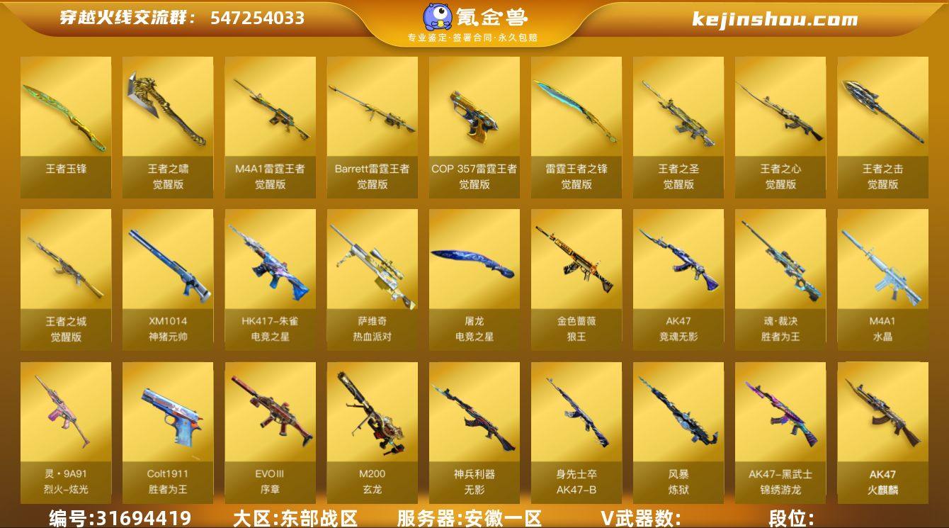 /东部/安徽一区/可排位【宗师5】/【Lv.102 荣耀元帅】/VIP6/135V/【四防传说】/传说艾丽莎/传说夜影/幻神/幻神黄忠/QBZ金色蔷薇/QBZ冠军之薇/朱雀/*2/白虎之魄/朱雀电竞之星/雷霆王者套/柯尔特冠军之特/柯尔特荣耀世冠/*3/USP神工天巧/COP雷霆王者/*3/八套神工天巧雷/六套雷霆王者雷/【生化】/6盘龙/6烈龙/炼狱/*2/6修罗/炽芒蝶刃/斯泰尔幻面灵狐/炼狱迷你小刚/【挑战】/暴君乱世超越Max/地狱征服者超越Max【音效卡】/【无白虎】/白虎音效卡/雷神音效卡/黑骑士音效卡/毁灭音效卡/【枪皮】/毁灭星空/毁灭荣耀之怒/雷神荣耀世冠AG/雷神荣耀之魄/雷神虎将/黑骑士冠军之势/黑骑士地狱火/【四防角色】/电竞教官云悠悠/兰巾帼英雄/王者迷迭香/王者凌霄/【角色】/龙儿小淘气/晴雅/王者樱热浪之夏/虚空/幽/【小人枪】/Cat刀锋/M4A1蓝水晶斯沃特精英/AK47红水晶斯沃特精英/COP旗袍/COP斯沃特/海滩汪汪巴雷特【道具】/永久烟雾头/护目镜/超级背包/各种戒指/各种光效/各种玩偶/永久AC/永久雷包/细节看图/【此账号未被封过十年】