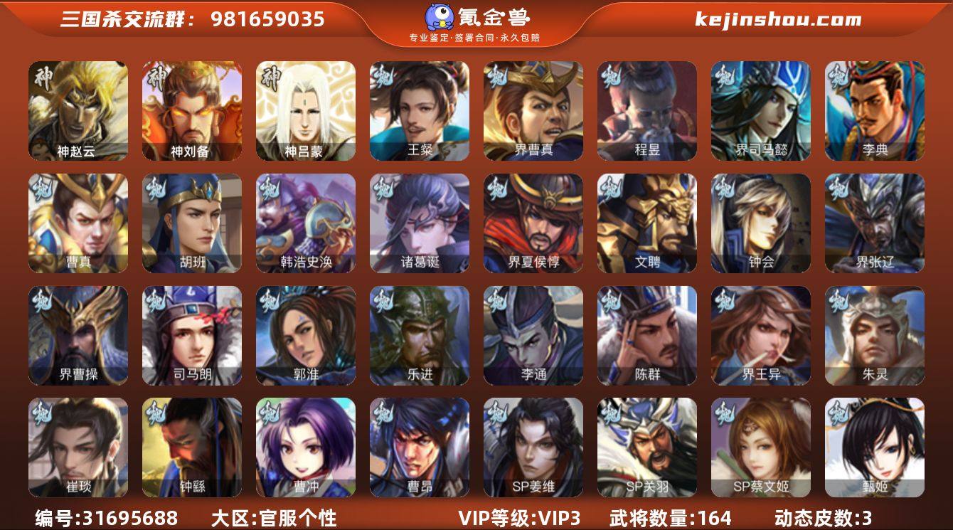 大材料中军,40宝珠,9万羽毛,5200将魂,真动态王粲,神赵云,神刘备,动态陶谦,界曹真,界黄忠,花鬘,赵襄,程昱9史诗中军,神吕蒙,关银屏,孙茹,凌操,谋韩当,带皮势田丰,崔琰,胡班,界关羽,界马超,吴班,势陈祗张布,界朱治,濮阳兴,荀谌,界刘表,王濬164将,国战57将,6.3万豆,满级活树