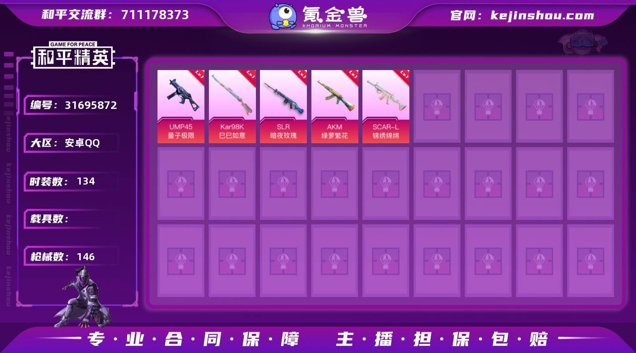 【ky411】安卓 手Q-2粉装-8特效枪-0载具-2粉色飞行器-36071热力值-5王牌印记-87套装-138枪皮 【粉色套装】:角色-羊梦糖心,角色-罪夜之冕 【粉色枪皮等级】:AKS-74U-森灵之息(五级),Kar98K-巳巳如意(五级),Mk14-甜梦熊击(五级),DP-28-豹影疾电(五级),MG-36-沧焰双生(五级) 【粉色枪皮】:UMP45-萌骑冒险,AKS-74U-森灵之息,Kar98K-巳巳如意,Mk14-甜梦熊击,Mk14-福马献瑞,AA12-G-萌骑幻想,DP-28-豹影疾电,MG-36-沧焰双生 【粉色飞行器】:绝对恒星飞行器,炫彩糖果飞行器 【粉色降落伞】:绝对恒星降落伞,第五大道降落伞,幻彩电音降落伞,异瞳寒姬降落伞,极意拳锋降落伞,炫彩糖果降落伞,辉云木星降落伞 【稀有套装】:角色-超感刻度,角色-甜心蒙太奇,套装-荧光像素,套装-雪国风尚,套装-炫彩糖果,套装-马上有钱,套装-粉恋花,套装-紫幽梦,套装-蓝冰羽,套装-极速光影,套装-彩虹兔,套装-云朵鹅,套装-雪绒豹,角色-绛羽幽主,套装-朱霞炽焰,套装-凌霄紫焰,套装-擎苍青焰,玩偶服-美羊羊,玩偶服-喜羊羊,角色-绯色魅影,套装-书海巡游,套装-画境星梦,套装-琴音绮想,套装-雨过天青,套装-红釉青花 【稀有枪皮】:AUG-冰晶雪宝,AKM-星之彼岸,AKM-破晓战魂,SCAR-L-夜灯,SCAR-L-炫彩节奏,M416-蓝色火焰,AUG-甜蜜菠萝,AUG-耀粉歌者,AUG-绝对恒星,M762-彩虹符号,M762-云朵鹅,M762-登顶巅峰,G36C-星穹咏叹调,蜜獾-天降萌叽,ACE32-画境星梦,ARX-凌霄紫焰,UZI-天降萌叽,UZI-幻影战神,UZI-影袭,UZI-红色方程式,UMP45-夜灯,UMP45-生命誓言,UMP45-圣穹绘梦,Vector-生命誓言,汤姆逊-炫彩节奏,MP5K-画境星梦,AKS-74U-荧光像素,JS9-凌霄紫焰,M24-炫彩节奏,SKS-迅猛狂鲨,Mini14-耀粉歌者,SVD-云朵鹅,M1加兰德-画境星梦,S686-彩虹符号,S12K-夜灯,AA12-G-画境星梦,...