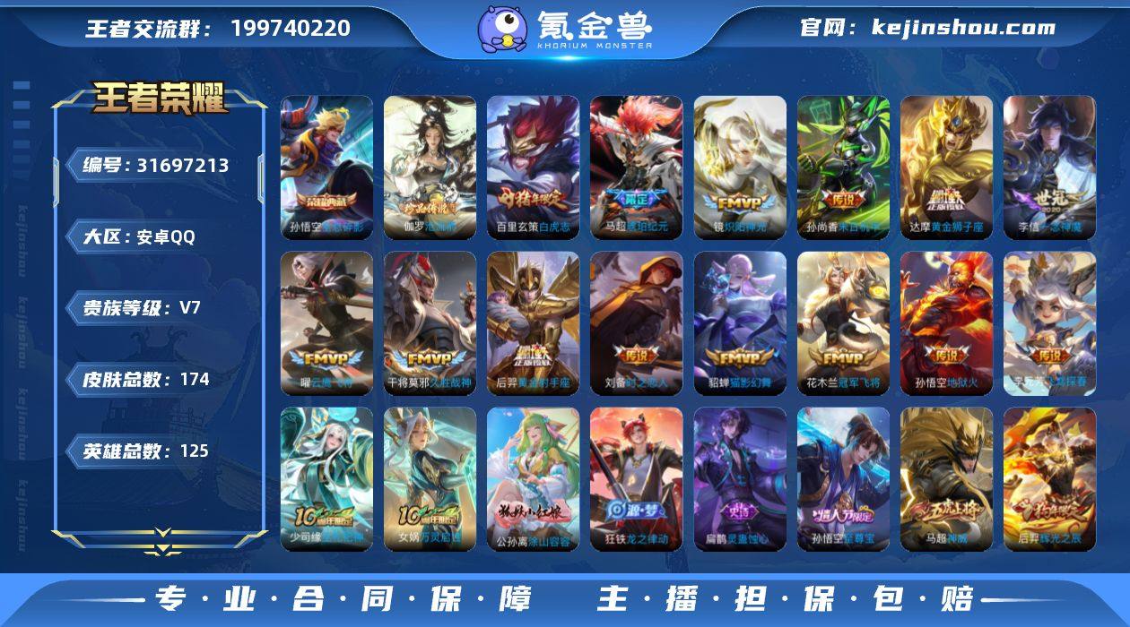 纯野王号,白虎志!猴子荣耀和至尊宝 伽罗的珍品,马超琥珀,神威 还有很多自行看!两个月后可以二次