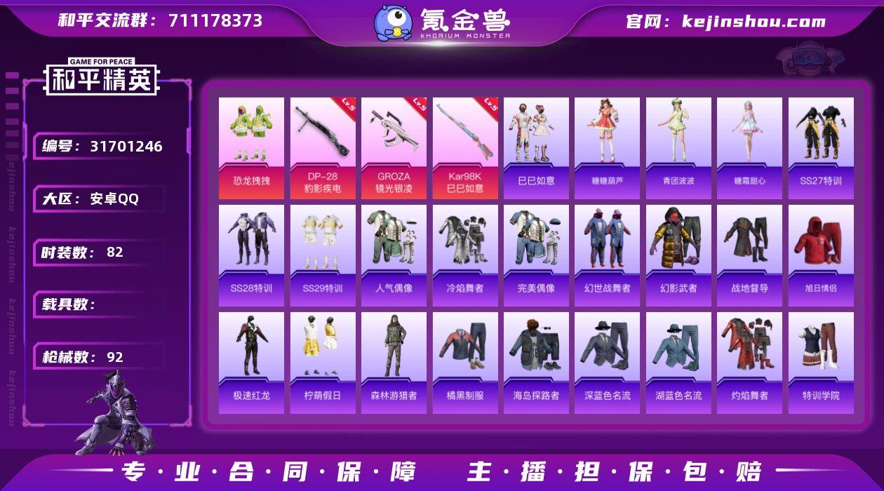 【地铁满天赋】YXc25768-【无二次协助处理】【因赛季更新游戏段付以上号为准!】 安卓Q-1粉装5特效枪2热门82套装92枪皮 5印记 历史超级王牌6星 【1粉装】 恐龙拽拽 【5特效枪】 Kar98K-巳巳如意 (5级) DP-28-豹影疾电 (5级) GROZA-镜光银凌 (5级) Mk14-福马献瑞(5级)UMP45-萌骑冒险(3级) 【2热门】 破蛋小黄鸡 极速红龙