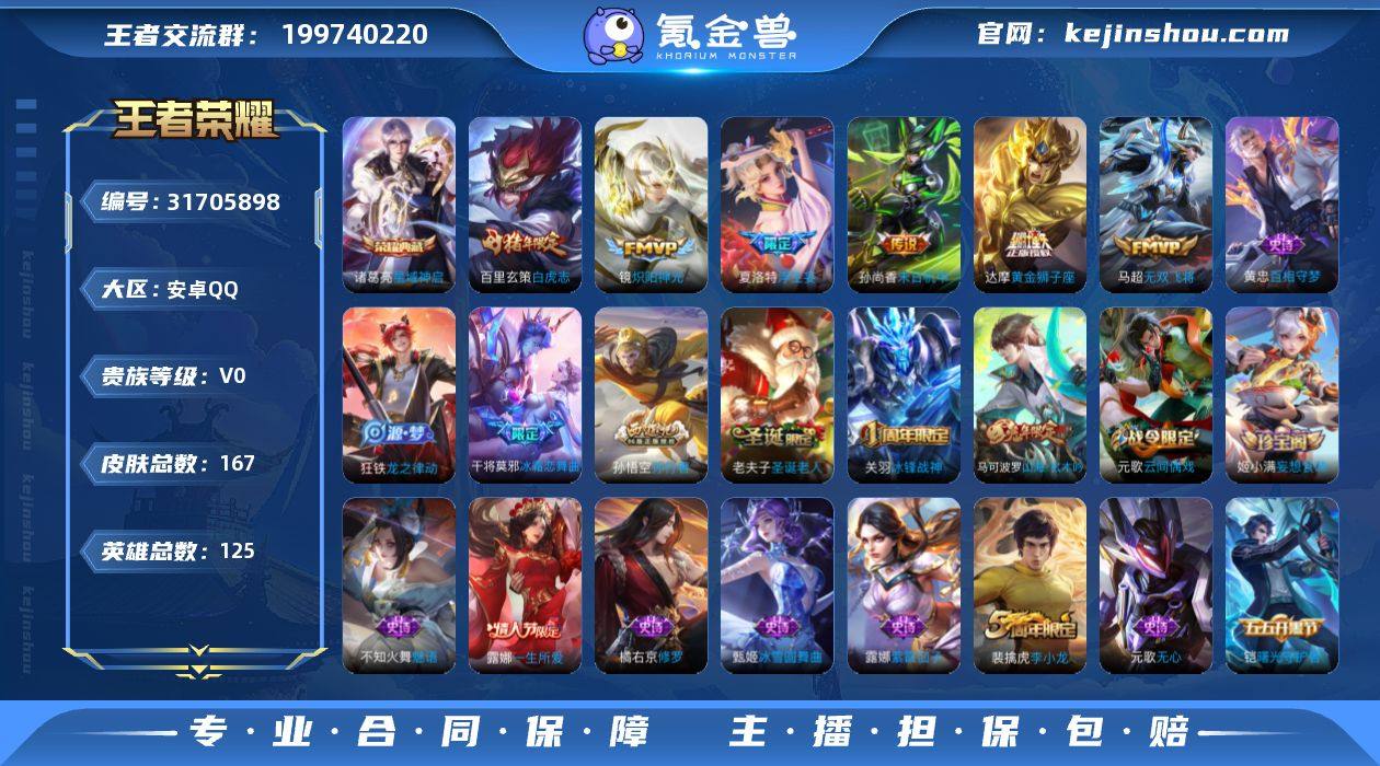 有四个省标,马超夏洛特老夫子白起,白虎志一个荣耀典藏两百多皮肤碎片三千星币