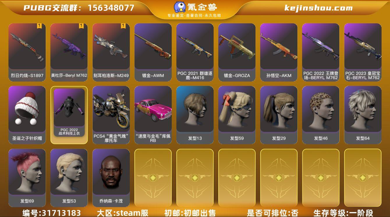 带初邮出一手小号,不用担心被盗,星魂套发光手臂各种夹克双马尾黑鬼,3把成长武器,绷带AK,3张图纸,165个武器皮肤,3448个聚合物,工坊有34个宝箱