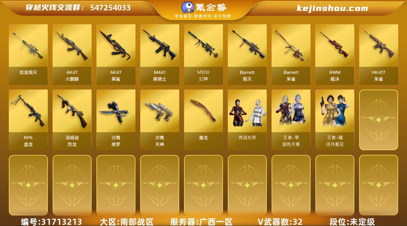 5456/南部/广西一区/【传奇1】/Lv.94 上将1/VIP2/32V/【三防传说】/传说女帝/幻神/朱雀/6盘龙/6烈龙/斯泰尔蝴蝶/3沙鹰天神/毁灭/毁灭英雄计划/裁决/【四防角色】/王者零国色天香/灵狐者职业经理/【道具】/永久超级背包/各种戒指/各种光效/各种玩偶/永久AC/永久雷包/细节看图/【此账号封十年已解】