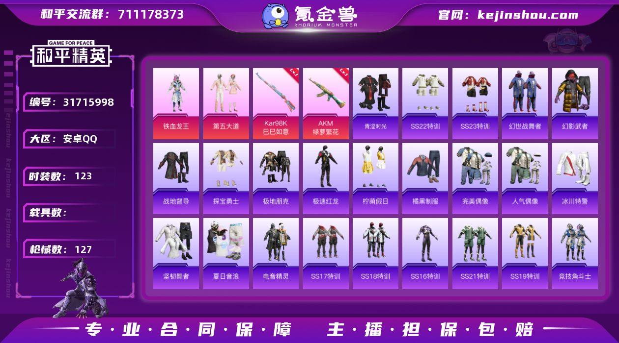 HX8819【2粉装3特效枪-地铁48点满天赋-113套装125枪皮36839热力值-第五大道-铁血龙王-送王者74皮肤1传说-身法素材号】Q等级34(2太阳)(吃鸡王者)一体号74皮肤1传说14史诗20限定-可二次 安卓Q-2粉装3特效枪5热门113套装125枪皮 36839热力值 1印记 历史超级王牌1星 【2粉装】 第五大道 铁血龙王 【3特效枪】 AKM-绿萝繁花 (5级) Kar98K-巳巳如意 (5级) DP-28-豹影疾电 (5级) 【5热门】角色-绯色魅影 角色-摩登魅猫 巳巳如意 角色-多纳泰罗 龟仙人 粉红小猪 抹茶蜜豆 极速红龙 Kar98K-深海曼妙 营地ID:773621337 【74皮肤1传说14史诗20限定】安卓Q--可二次 【传说】 黄金射手座 【热门】猫狗日记男 特工战影 蔷薇恋人 紫霞仙子 末日机甲男 星夜王子 天才门将 时之恋人女 街头霸王 冰雪圆舞曲 群星魔术团程咬金 沙漠行僧 金庭之子 大漠名商 云中旅人 海盐诗旅 擒涛扼浪 魅力维加斯 探海日志 水果甜心 古海寻踪 天穹祈灯 江河有灵 五谷丰年 鹰眼统帅 92英雄-营地ID:1745576983 安卓Q区-2粉装-3特效枪-36839热力值-1王牌印记-113套装-127枪皮【优质套装】: 第五大道 铁血龙王【特效枪等级】:Kar98K-巳巳如意(五级- Kar98K-巳巳如意)AKM-绿萝繁花(五级- AKM-绿萝繁花)【优质武器皮肤】: Kar98K-巳巳如意 AKM-绿萝繁花【稀有武器皮肤】: DBS-乌木金纹 SCAR-L-海盐豹豹 平底锅-精灵梦叶罗丽 Kar98K-巳巳如意 Mk14-冰河战士 UZI-冰河战士 M16A4-冰河战士 20-H-乌木金纹 AKM-绿萝繁花 M416-红色方程式 M416-蓝色火焰 M416-糯团青竹 AKM-夜灯 AKM-彩虹符号 AKM-破晓战魂 AKM-龙的传人 AKM-虎虎生威 AKM-萌趣颜团子 AKM-霓虹街区 SCAR-L-红色方程式 SCAR-L-玉兔迎春 SCAR-L-炫彩节奏 M16A4-红色