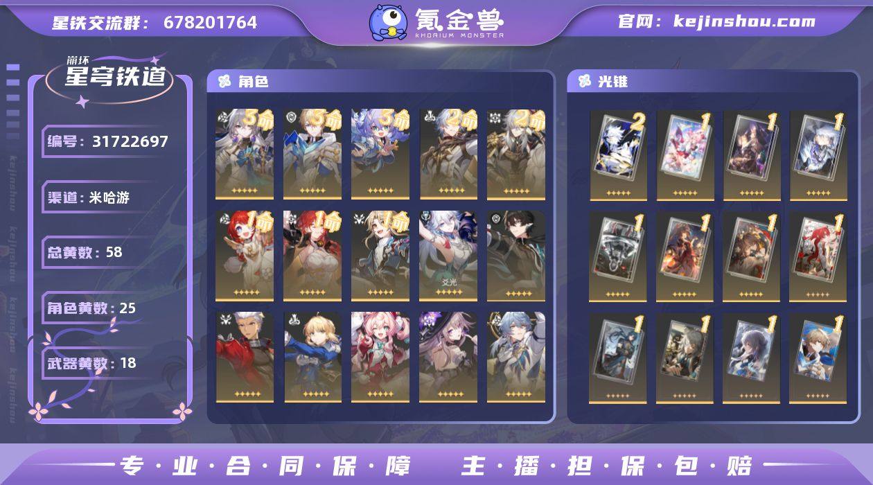 纯手动号,除王棋外三路深渊目前为止全满 不送邮箱是因为绑的是我qq邮箱(应该是) 有260分白厄和240分景元 成就827 战利品1302(橡木没肝,时光归墟没找完,二相乐园没找)