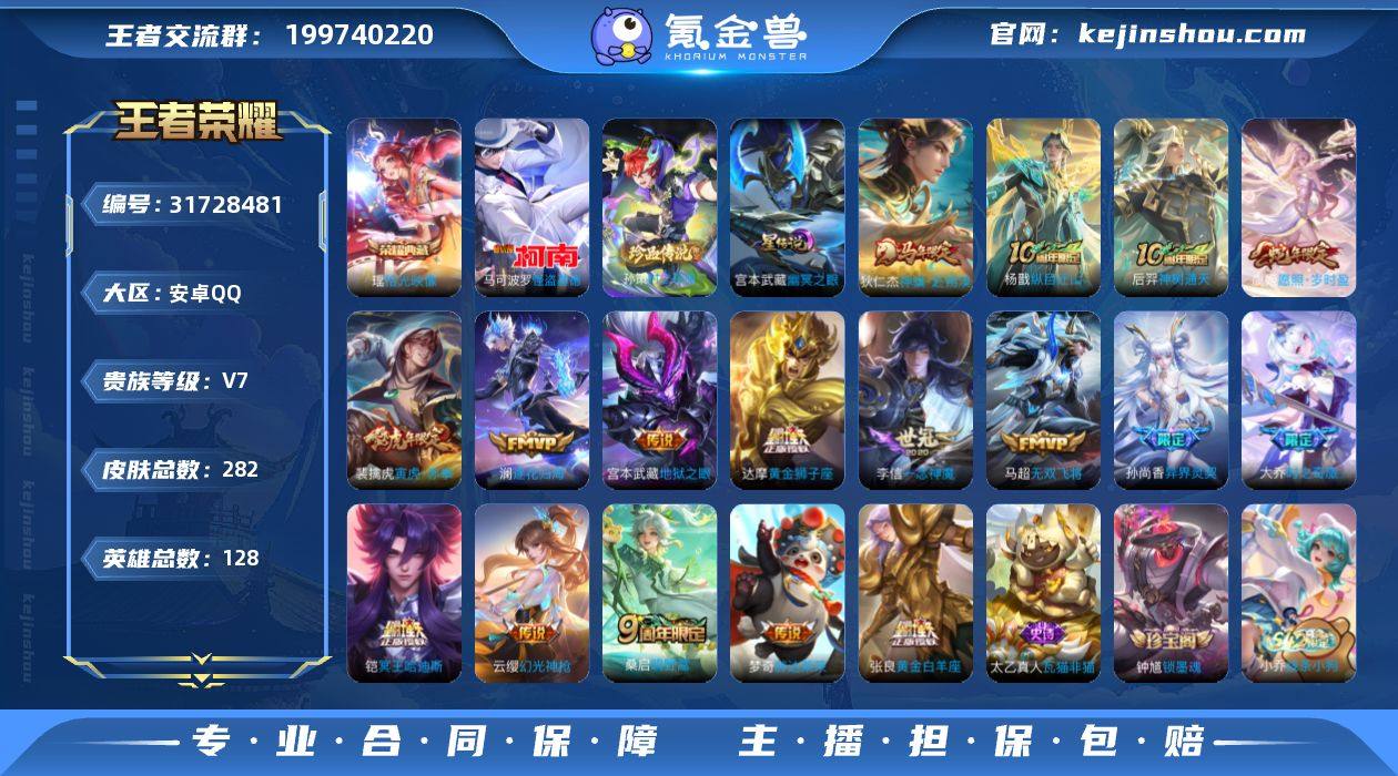 - 皮肤总数:282款,图鉴等级63级,认证为“资深收藏家·百变传说” - 荣耀水晶:幸运值188,距离满抽仅差172次,下一次必出荣耀水晶,可直接兑换典藏皮肤 - 稀有皮肤:多款限定/传说/史诗皮肤,包括多款年限、赛事限定、荣耀典藏级皮肤 - 英雄池:全英雄(128/129),元流之子等热门英雄满熟练度 - 段位与成就:王者印记9个,荣耀印记2个,巅峰赛1530分,全能高手认证 - 游戏时长:1822天老号,对战场次6772场,信誉等级7级,账号安全无不良记录