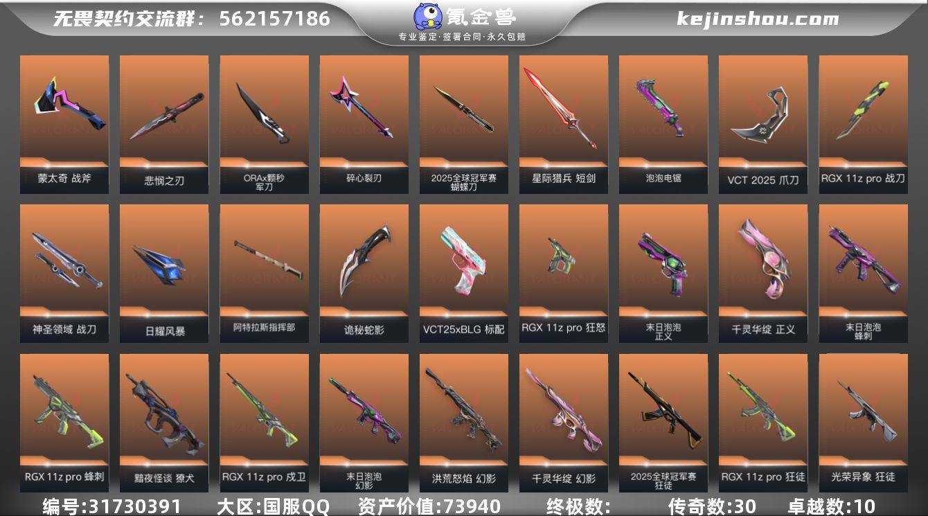 有盖亚ak,侦查幻影,怜悯之刃,颗秒套,显卡ak套,末日泡泡套,龙炎ak,光荣ak,莲花ak,塑水宗,马年ak,掠夺ak,流脓幻影,莲花幻影,天界幻影,VCT爪刀,25套,天界大狙和鬼魅,还有混沌大狙,紫金骇灵,25VCT标配一把,基本上主战皮都毕业了,刀皮也不少,另外王者也很多皮肤,绝对会给你一份附赠惊喜,这个号承载了我整个青春,实在是急出没办法了