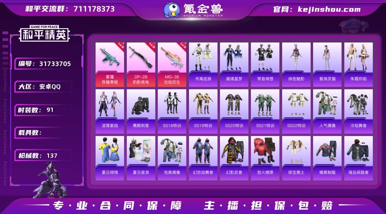 【满地铁天赋】YXc25274-【可二次】【因赛季更新游戏段付以上号为准!】 安卓Q-4特效枪5热门91套装137枪皮 1印记 历史超级王牌2星 【5特效枪】 AKS-74U-森灵之息 (5级) MG-36-沧焰双生 (5级) DP-28-豹影疾电 (5级) 蜜獾-异瞳寒姬 (5级) Mk14-福马献瑞(5级) 【5热门】 鹰眼刺客 团圆交子 漫步者 破蛋小黄鸡 M762-瑞龙福将
