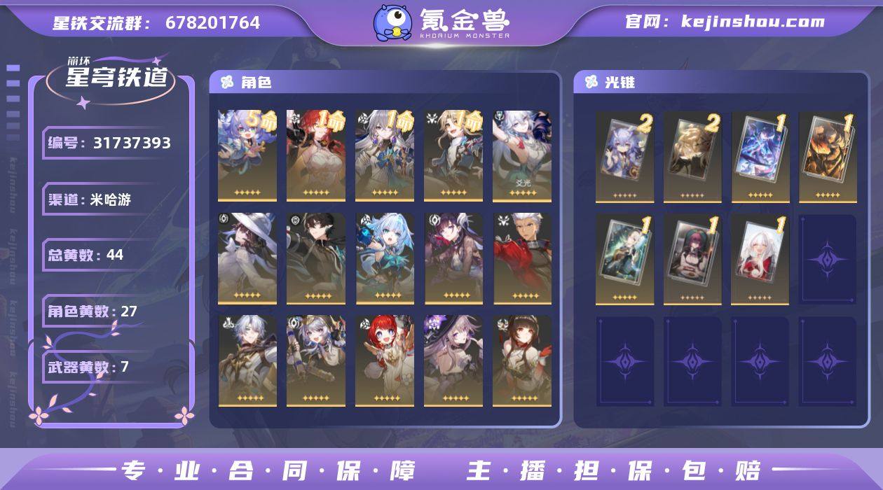 急出!!!可讲价可提供换绑材料,练度比较好有击破队,救世主和dot完整配队!价格好说