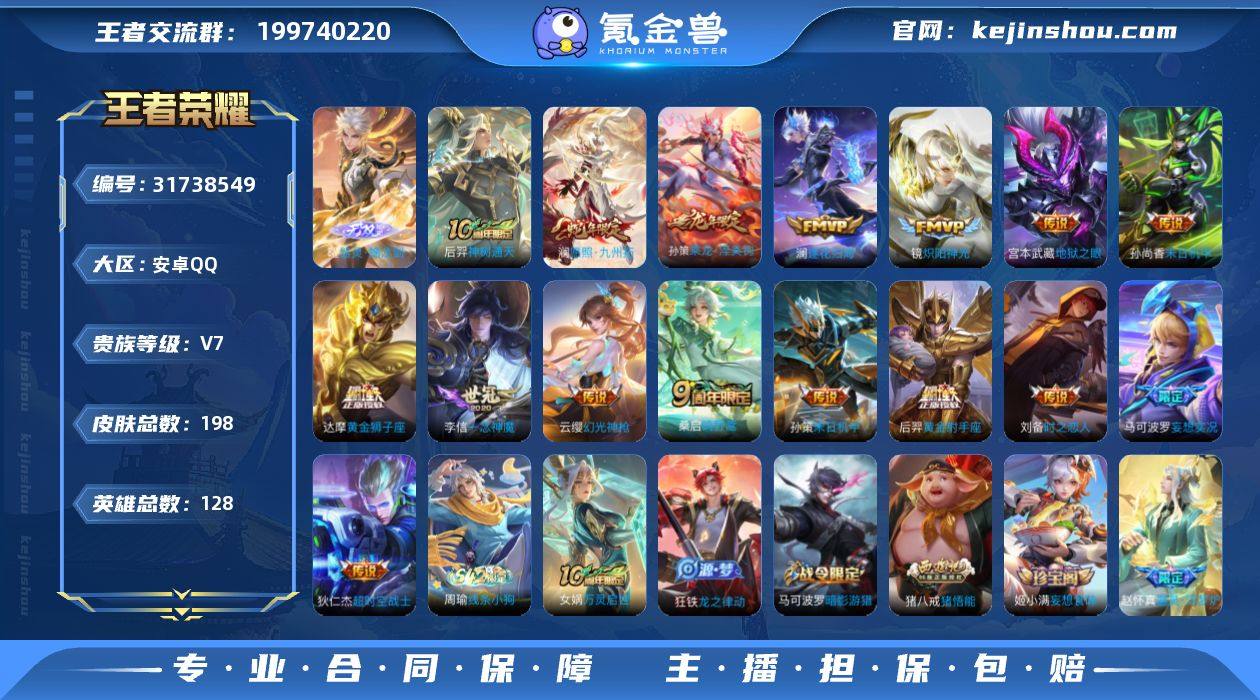 BHC11782,0.9小国标猪八戒/1星元,安卓Q-V7-永恒钻石II段位-128英雄-198皮肤-1无双-16传说-51史诗 【英雄全皮】:镜全皮 【无双皮肤】:曜器灵螭龙剑 【传说皮肤】:后羿神树通天,澜愿照九州拓,云缨幻光神枪,桑启鸣野蒿,孙策乘龙淬吴钩,澜逐花归海,马可波罗妄想实况,孙策末日机甲,镜炽阳神光,李信一念神魔,刘备时之恋人,达摩黄金狮子座,后羿黄金射手座,孙尚香末日机甲,宫本武藏地狱之眼,狄仁杰超时空战士 【限定皮肤】:姜子牙天穹之誓,李白谪仙醉月,狄仁杰阴阳师,赵云皇家上将,鲁班七号狮舞东方,马可波罗暗影游猎,马可波罗妄想实况,狄仁杰魔术师,达摩沙漠行僧,项羽海滩派对,老夫子航海奇遇记,王昭君午后时光,李元芳云中旅人,鬼谷子五谷丰年,梦奇顽趣,沈梦溪大漠名商,裴擒虎擒涛扼浪,猪八戒猪悟能,嫦娥暖冬兔眠,鲁班大师探海日志,镜匿光追影者,桑启海盐诗旅,张良古海寻踪,高渐离燃音魔法,妲己灵卜魔法,鬼谷子天穹祈灯,姬小满妄想食味,孙策乘龙淬吴钩,沈梦溪龙舞盛年,鲁班七号蔬乡物语,李元芳蔬乡物语,刘邦剑破天穹,程咬金群星魔术团,关羽决胜骁骑,镜青焰无极,项羽苍威无极,刘备异域游侠,芈月浮光幕影,周瑜熔金海岸 【年限皮肤】:孙策乘龙淬吴钩,澜愿照九州拓 【赛季限定】:达摩沙漠行僧,沈梦溪大漠名商,李元芳云中旅人,桑启海盐诗旅,裴擒虎擒涛扼浪,鲁班大师探海日志,张良古海寻踪,鬼谷子天穹祈灯,刘邦剑破天穹,姜子牙天穹之誓,东皇太一噬灭天穹,太乙真人谧流熔炉,钟馗虚灵犬护,亚瑟荣光之誓,梦奇顽趣,牛魔星界战将 【战令限定】:鲁班七号狮舞东方,马可波罗暗影游猎,老夫子航海奇遇记,王昭君午后时光,嫦娥暖冬兔眠,高渐离燃音魔法,妲己灵卜魔法,鲁班七号蔬乡物语,李元芳蔬乡物语,镜青焰无极,项羽苍威无极,亚连破空之剑,廉...