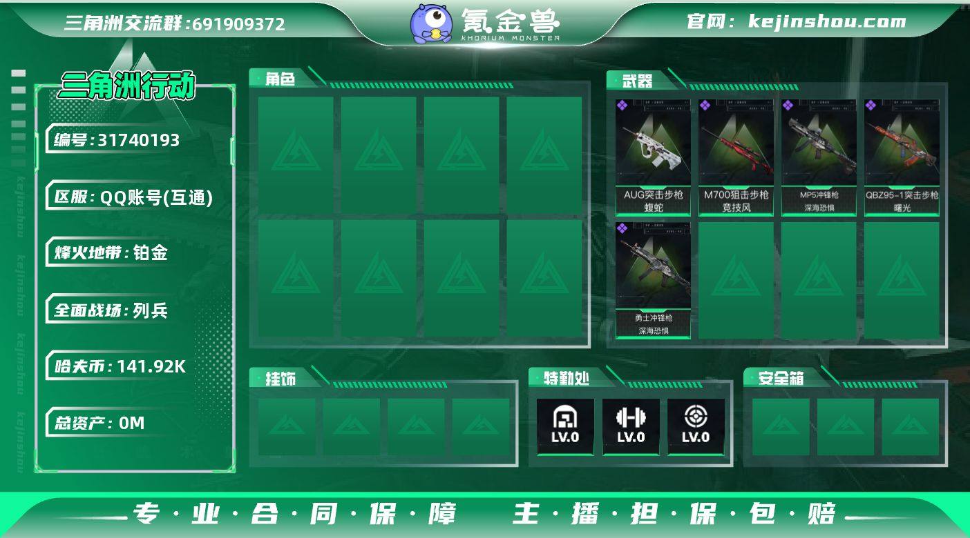 14202|精品脱坑号 总资产10.9M 流动资产5.7M 暗星 凌霄戍卫 低价出QQ区 哈夫币:141923 近战数:1 枪械数:45 载具数:2 烽火地带等级:55 全面战场等级:10 烽火地带段位:铂金 全面战场段位:列兵 特勤处:技术中心Lv.1|工作台Lv.1|制药台Lv.1|防具台Lv.3 近战:黑鹰 枪械:AUG突击步枪-蝮蛇|QBZ95-1突击步枪-曙光|勇士冲锋枪-深海恐惧|MP5冲锋枪-深海恐惧|M700狙击步枪-哈夫克警备|M700狙击步枪-竞技风|M250通用机枪-囚徒|AKS-74U突击步枪-冰天雪地|勇士冲锋枪-冰天雪地|SMG-45冲锋枪-幻影结构|SMG-45冲锋枪-行动开启|Vector冲锋枪-先锋|MP5冲锋枪-弄臣|SKS射手步枪-弄臣|Mini-14射手步枪-荣耀列队|SV-98狙击步枪-繁盛|SV-98狙击步枪-哈夫克航天|G18-哈夫克航天|M249轻机枪-冰天雪地|AS Val突击步枪-黑巧甜心|G3战斗步枪-高雅黑|SCAR-H战斗步枪-数码迷彩|M7战斗步枪-黑巧甜心|M7战斗步枪-红色涂装|M16A4突击步枪-高雅黑|K416突击步枪-高雅黑|K416突击步枪-几何迷彩|QBZ95-1突击步枪-海浪|QBZ95-1突击步枪-高雅黑|M4A1突击步枪-海色|M4A1突击步枪-高雅黑|M4A1突击步枪-粉色涂装|勇士冲锋枪-磐石|野牛冲锋枪-高雅黑|Vector冲锋枪-几何迷彩|P90冲锋枪-黑巧甜心|MP5冲锋枪-黄蜂|MP5冲锋枪-海色|SR-25射手步枪-黑巧甜心|SR-25射手步枪-黄蜂|SV-98狙击步枪-红色涂装|沙漠之鹰-海浪|M249轻机枪-黄蜂|PKM通用机枪-变色龙|M1014霰弹枪-海浪 载具:轮式突击炮-巅峰竞赛|突击车-寒梅