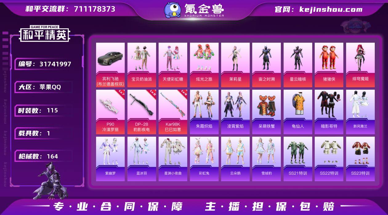 【6429】苹果 手Q-8粉装-3特效枪-1载具-1粉色飞行器-50743热力值-3王牌印记-115套装-164枪皮