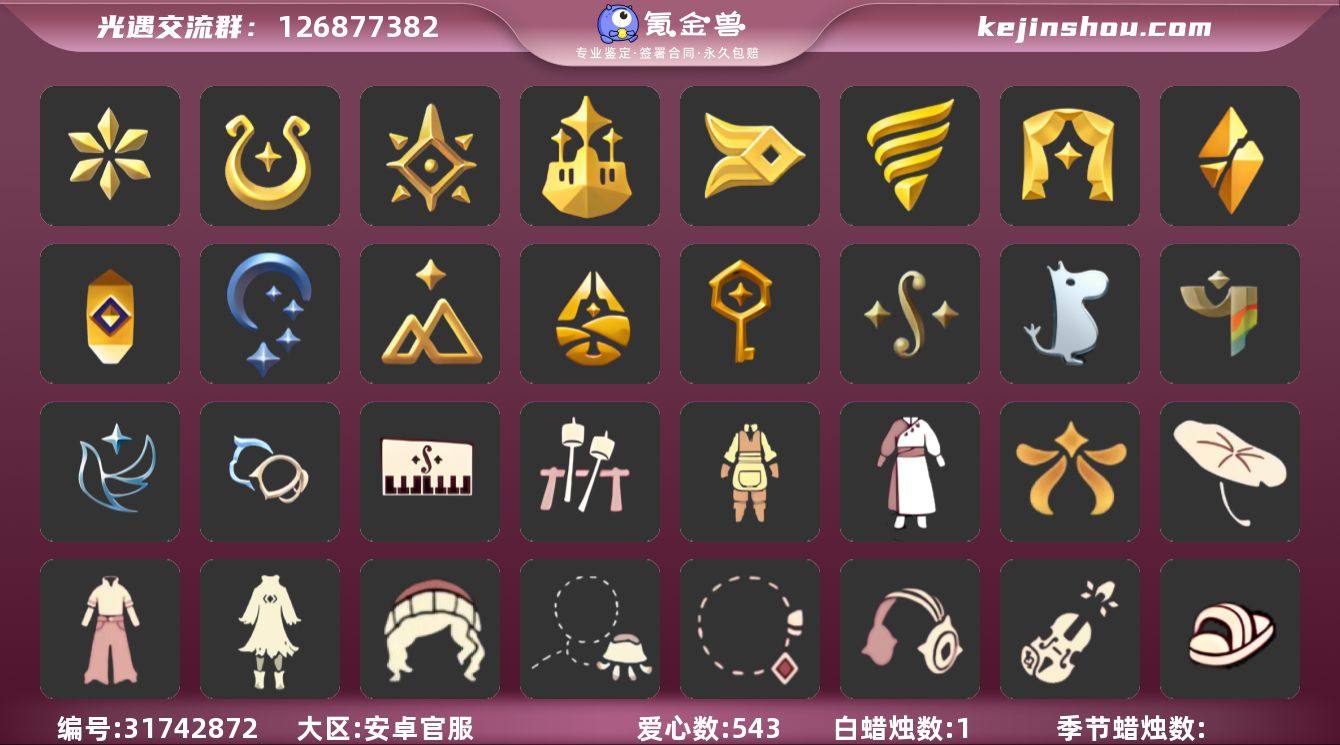 安卓官服伪音韵不断白鸟耳坠阿努比斯超多礼包【JLGY9607】 【毕业图】晨岛,云野,雨林,霞谷,暮土,禁阁 【毕业季】音韵季,魔法季,预言季,梦想季,风行季,潜海季,表演季,破晓季,欧若拉,追忆季,夜行季,拾光季,归巢季,九色鹿,筑巢季,二重奏季,姆明季,彩染季,青鸟季,双星季 【身高】1.47-13.47 【稀有礼包】音韵吉他,瑞气服饰,龙鳞束身长袍,园丁装扮,彩虹武士裤,牛仔裤,女巫裙,肯德基联动礼包,向日葵连衣裙,爱丽丝围裙套装礼包,鹊桥相会礼包,兔子拖鞋,拖鞋,圣诞雪人靴,潮汐套装礼包,小黄鸭雨衣套装,吸蟹面具,粽子发饰,星月头冠,神鹿祝福礼包,金鳞耳饰,彩虹耳钉,彩虹耳机,火焰眼镜,爱心眼镜,周年影院套餐礼包,巫树犄角,圣诞鹿角,大蝴蝶结,水母肩饰,冥龙套装礼包,活力海牛礼包,夏日有友礼包,温暖绒帽,彩虹帽,巫师帽,蜘蛛朋克头,贝壳发饰,蓝色音乐符,雪花发夹,兔子发饰,蝴蝶与花发饰,小海牛配饰,大橘大利,鲤跃龙门,小狗周年头饰,四叶草头饰,小黄鸭发饰,TGC斗篷黑,创始人斗篷,小王子斗篷,星球斗篷,欧若拉之翼,异彩莲花斗篷,姆明妈妈手作斗篷,玫瑰褶边斗篷,暗陨斗篷,福娃礼包,盘龙围巾斗篷,年年有鱼礼包,缤纷飘带斗篷,周年线框斗篷,遥鲲披肩斗篷,蝙蝠斗,蛛丝斗篷,皮皮猫礼包,透明蜘蛛斗,吸蟹斗篷,瑞雪斗篷,白雪斗篷,雪怪斗篷,衬芯斗篷,绊爱斗,惊喜手杖,中秋灯笼,瑞气纸伞,小提琴,荷叶伞,献瑞折扇礼包,飞鸟纸伞,情人秋千,情人跷跷板,花憩茶桌,小憩茶桌,野餐礼包,网易云留声机,狐狸背包,情人小船,冥龙南瓜,猫咪背饰,雪花水晶球,篝火点心,球赛套餐,自然之声礼,周年庆抱枕,冲浪滑板,立式钢琴 【毕业物品】白鸟发型,颊纹三角面具,阿拉丁帽,双边耳坠,手拍大鼓,阿努比斯,凤凰面具,凤凰斗篷,小王...